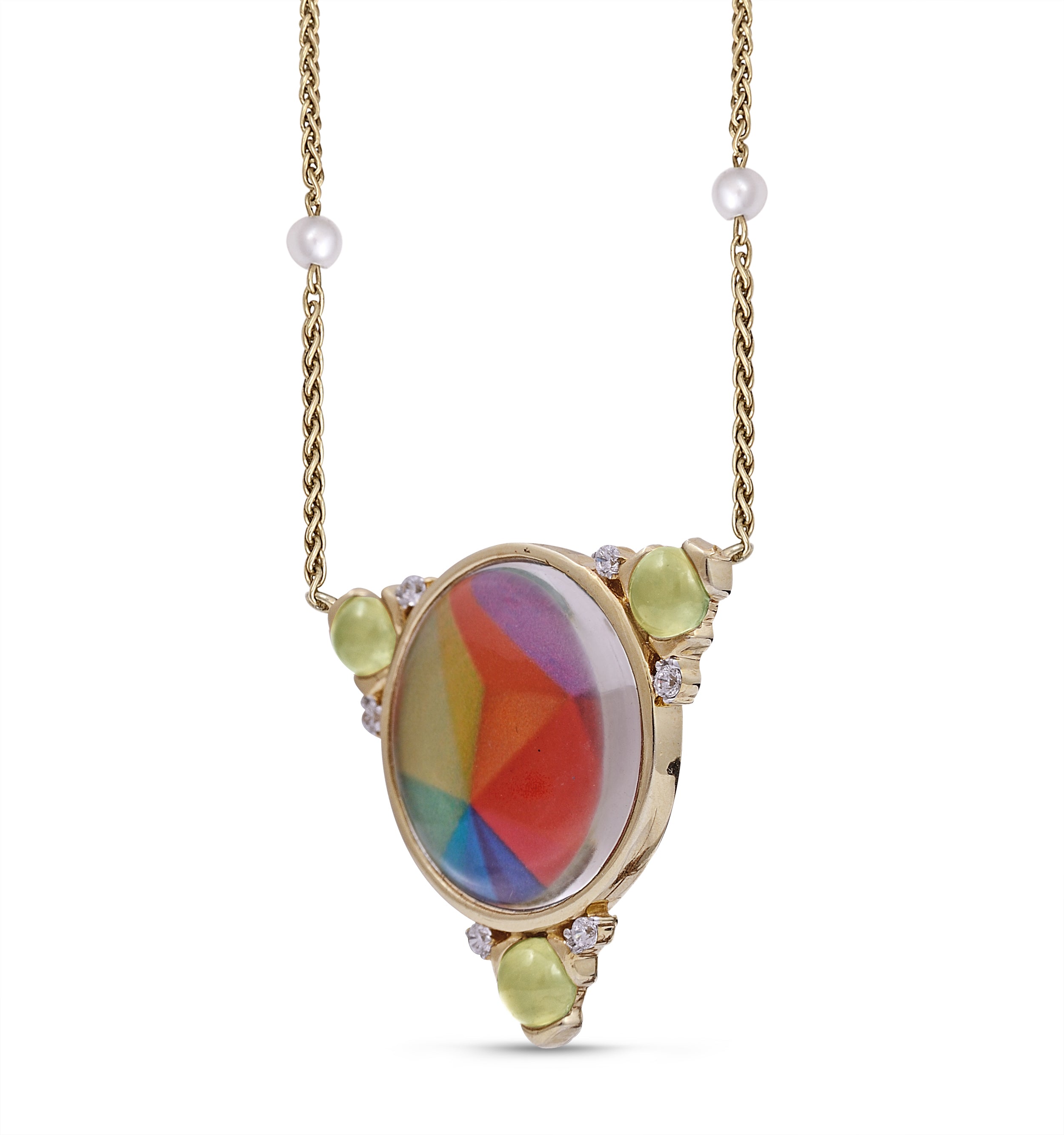 Sprinkle of Color Prehnite & Diamond Necklace with Pearls in 14K Yellow Gold Plated Sterling Silver