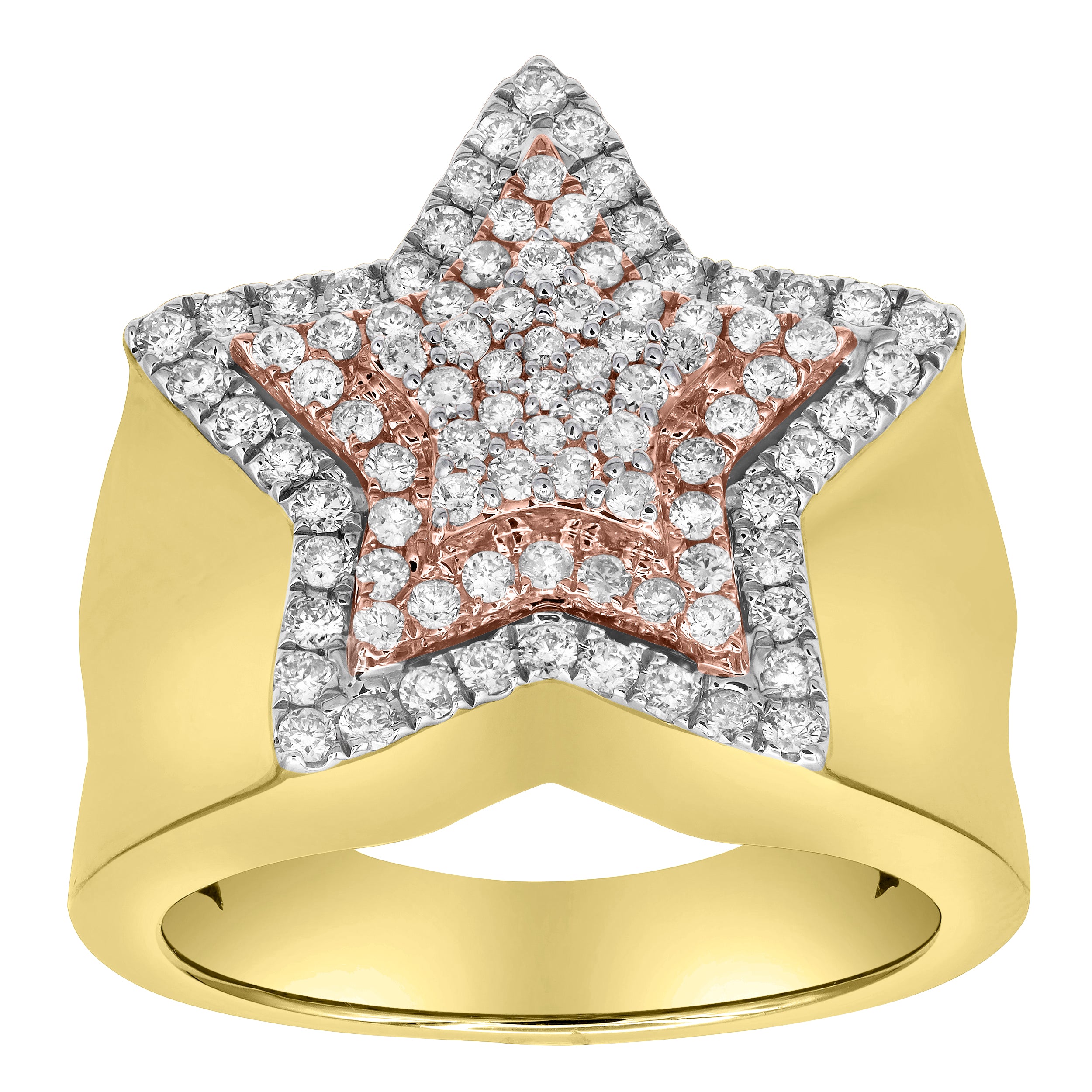 Star Studded Bling 14K Yellow Gold Two Tone Star Ring - 3.13 Ct