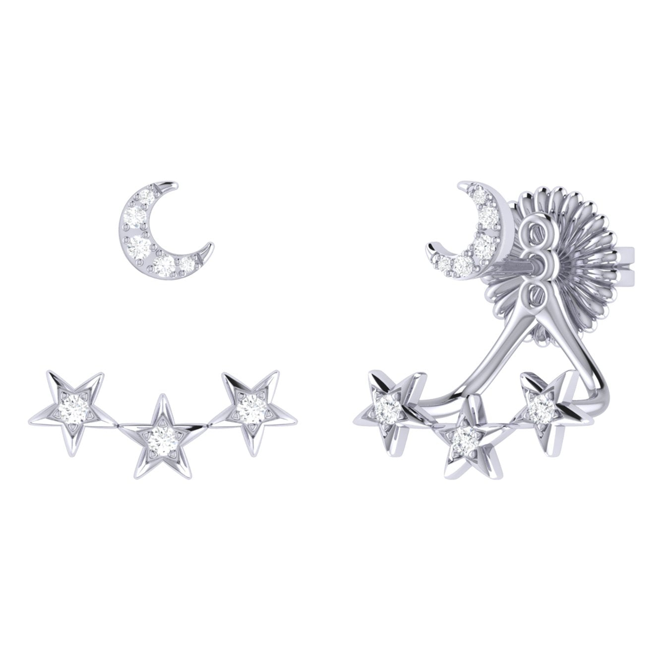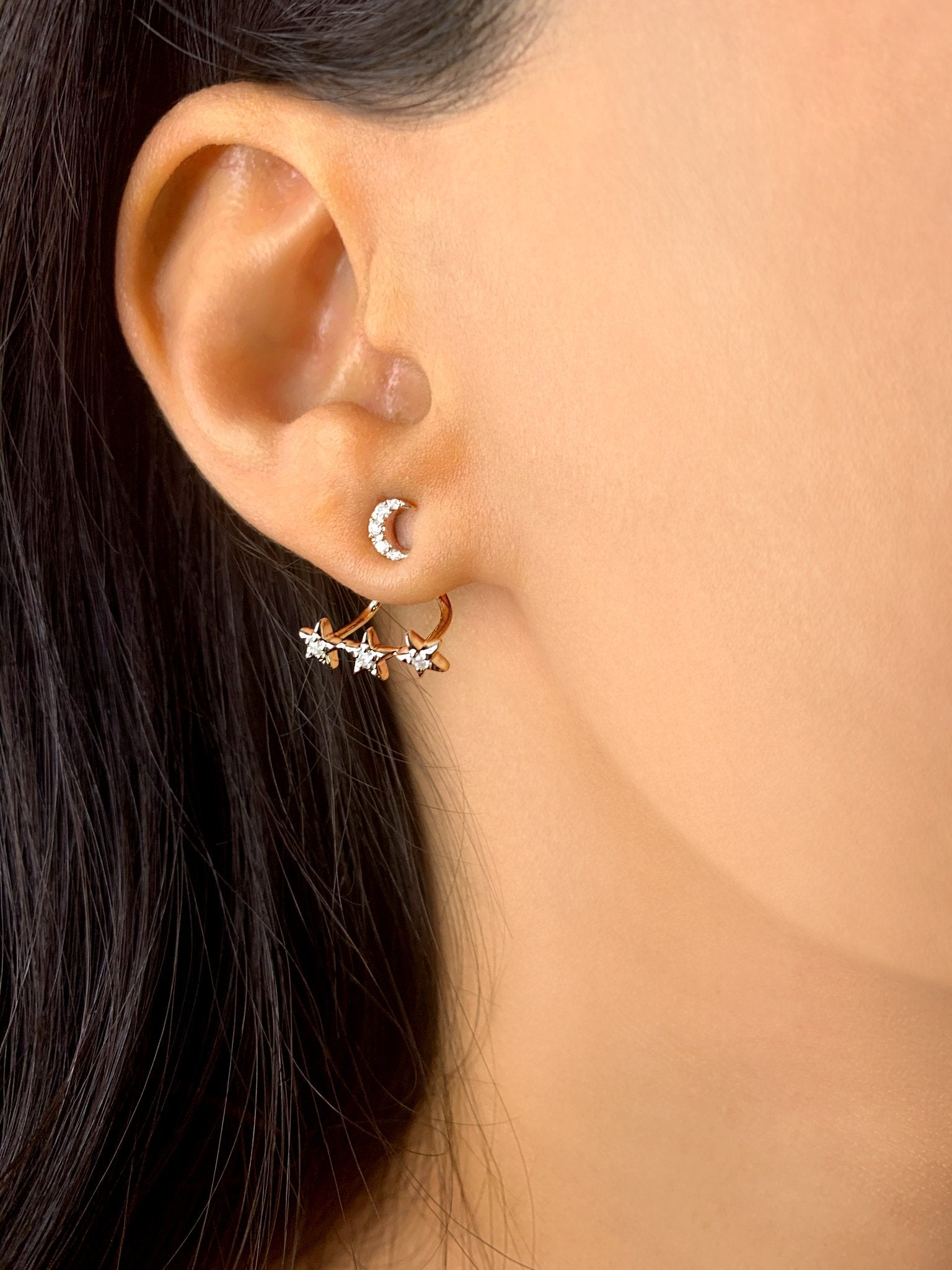 Star Trio Crescent Diamond Stud Earrings in 14K White Gold
