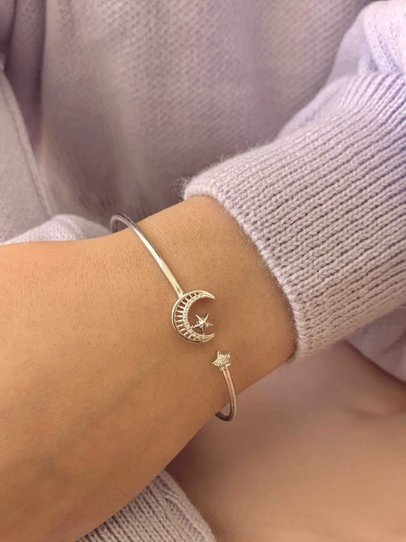 Our Starkissed Crescent Sterling Silver Diamond Adjustable Cuff offers a blend of celestial elements for adjustable elegance. Expertly handcrafted with timeless beauty and grace.