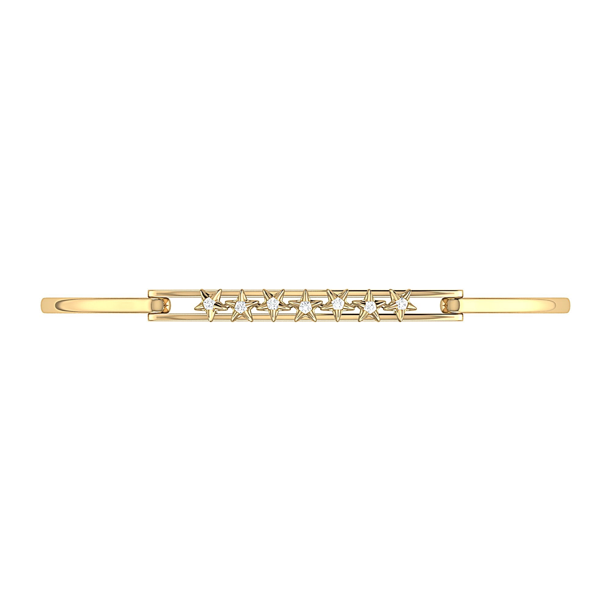 Gaze at the stars with this tasteful bangle around your wrist that lights up the night. Crafted in 14K Yellow Gold, this bangle features 0.12 carats of 100% natural, genuine diamonds perfectly set in a channel setting.