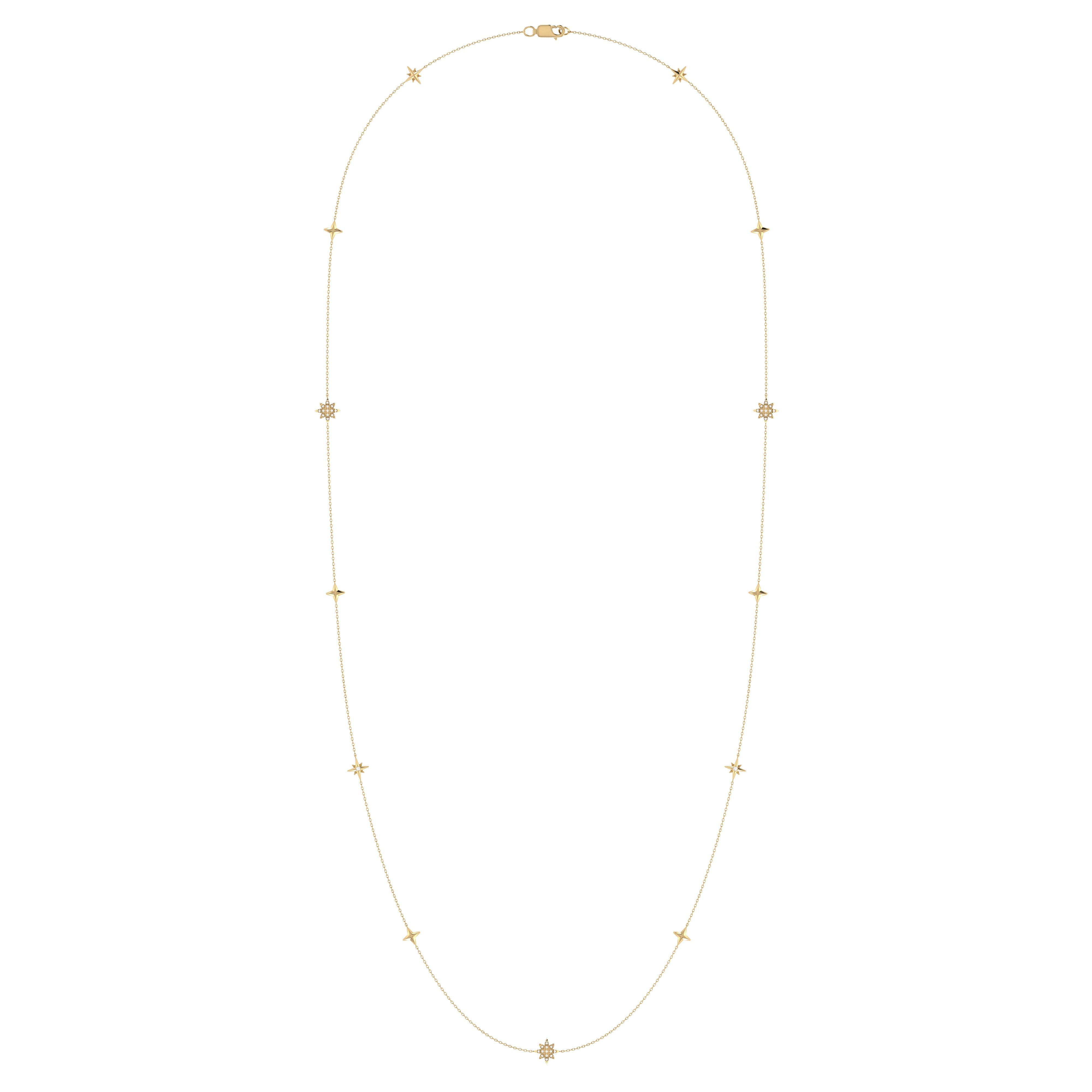 Layering never looked so dreamy! With our delicately beautiful Starry Lane necklace, you will shine brighter than ever before. Crafted in 14K Yellow gold, this necklace features 100% natural, genuine diamonds. 0.11 carats of diamonds are used in individual plate prong and collet prong settings. This necklace is 30" long and uses a cable chain with lobster clasp.