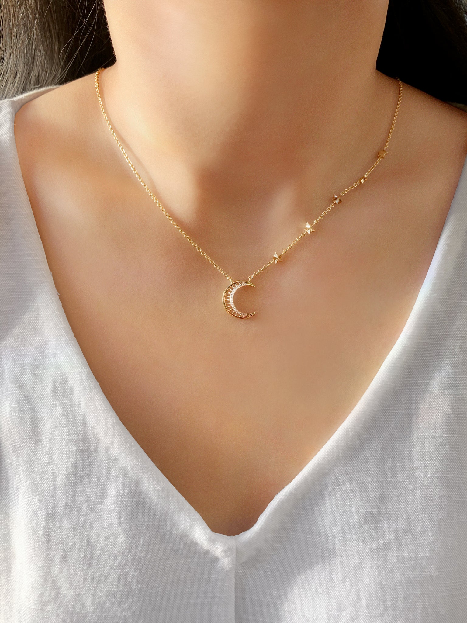 Starry Lane Moon Diamond Necklace in 14K Yellow Gold Vermeil on Sterling Silver