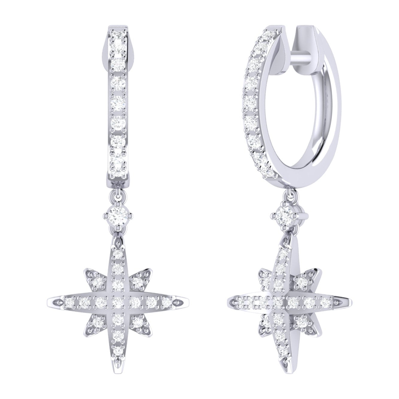 Radiate a warm aura with the Supernova Hoop Earrings. Crafted in 14K White Gold, these hoop earrings feature 100% natural, genuine diamonds. 0.27 carats of diamonds are used in individual plate prong & collet prong settings. These hoop earrings are 11.1mm wide and 27.8mm long from the ear lobe.