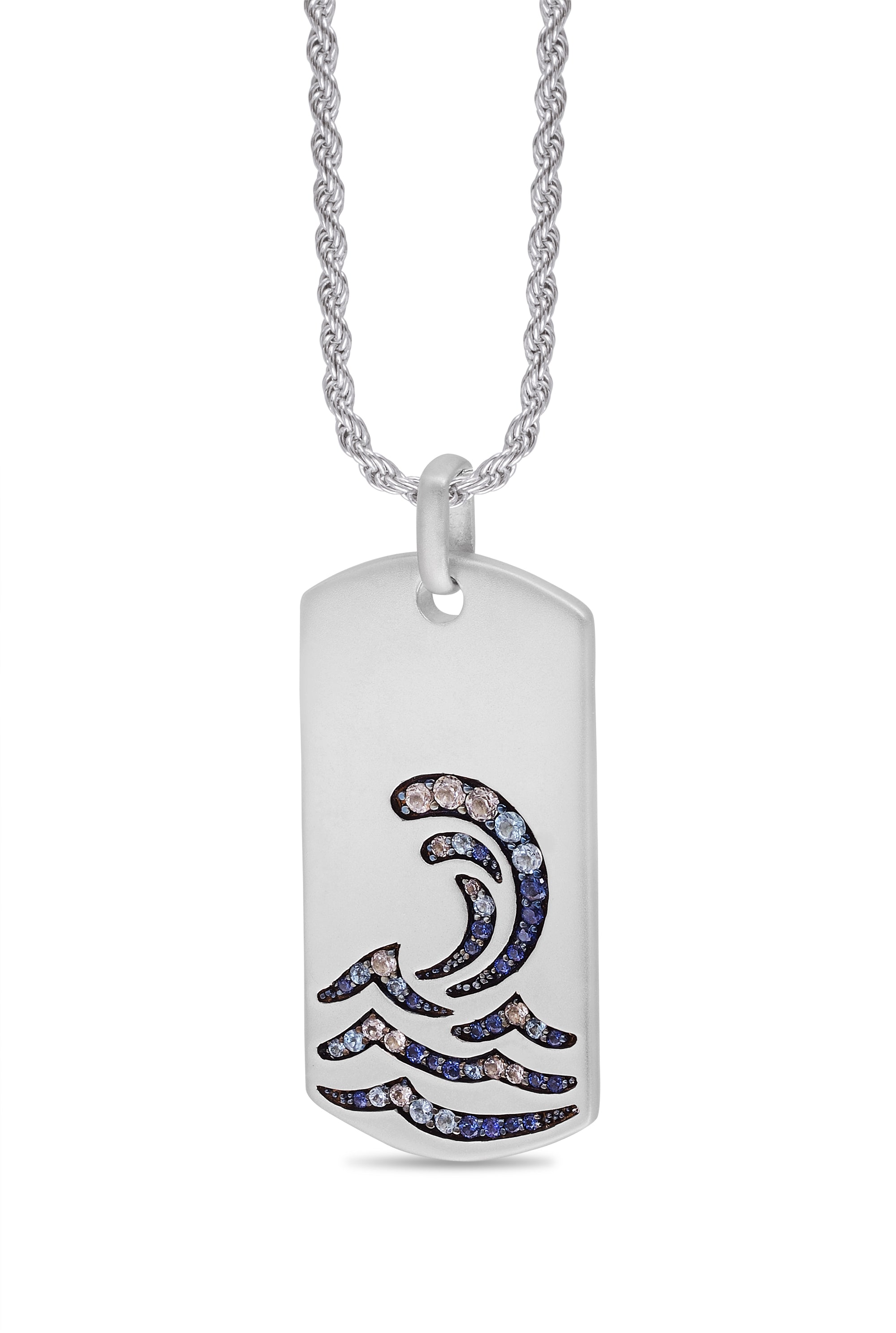 Our Surfrider Beach Sapphire & Topaz Silver Tag Necklace offers a refreshing and beach inspired design. Crafted for the man who loves coastal elegance and vibrant color.