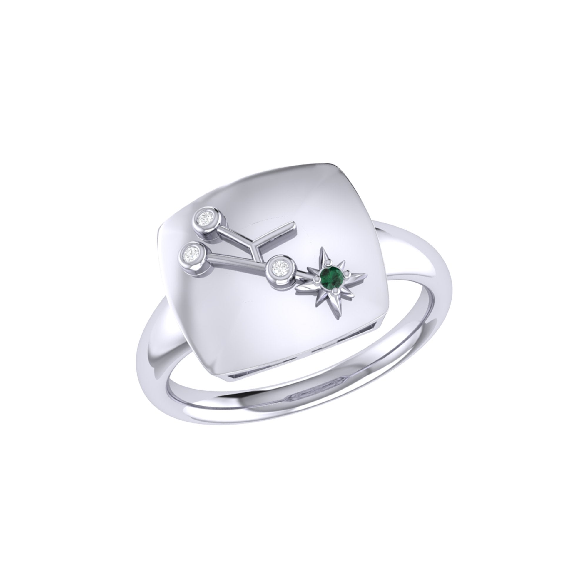 Taurus Bull Emerald & Diamond Constellation Signet Ring in 14K White Gold