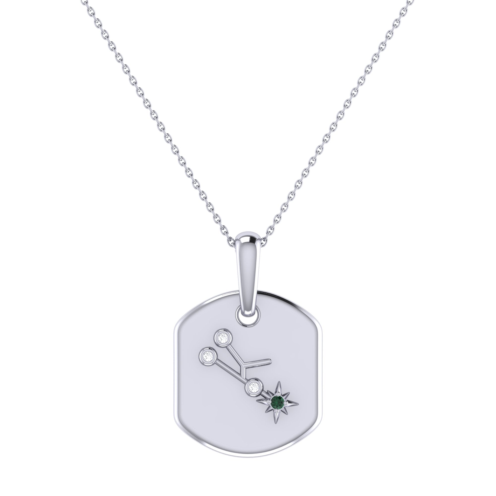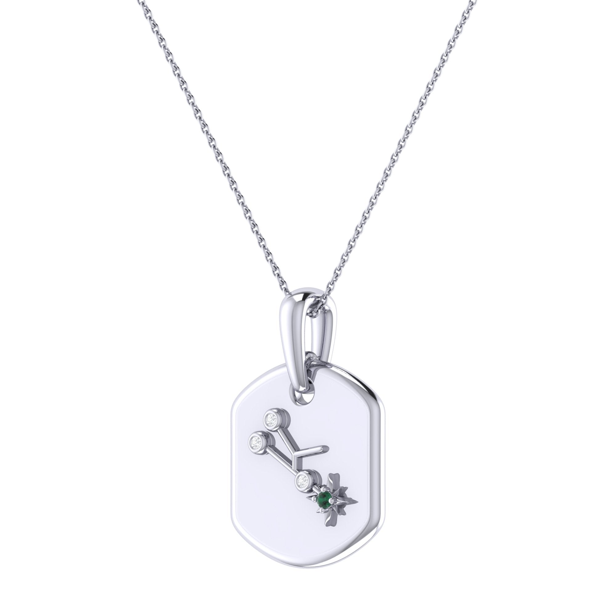 Taurus Bull Emerald & Diamond Constellation Tag Pendant Necklace in 14K White Gold