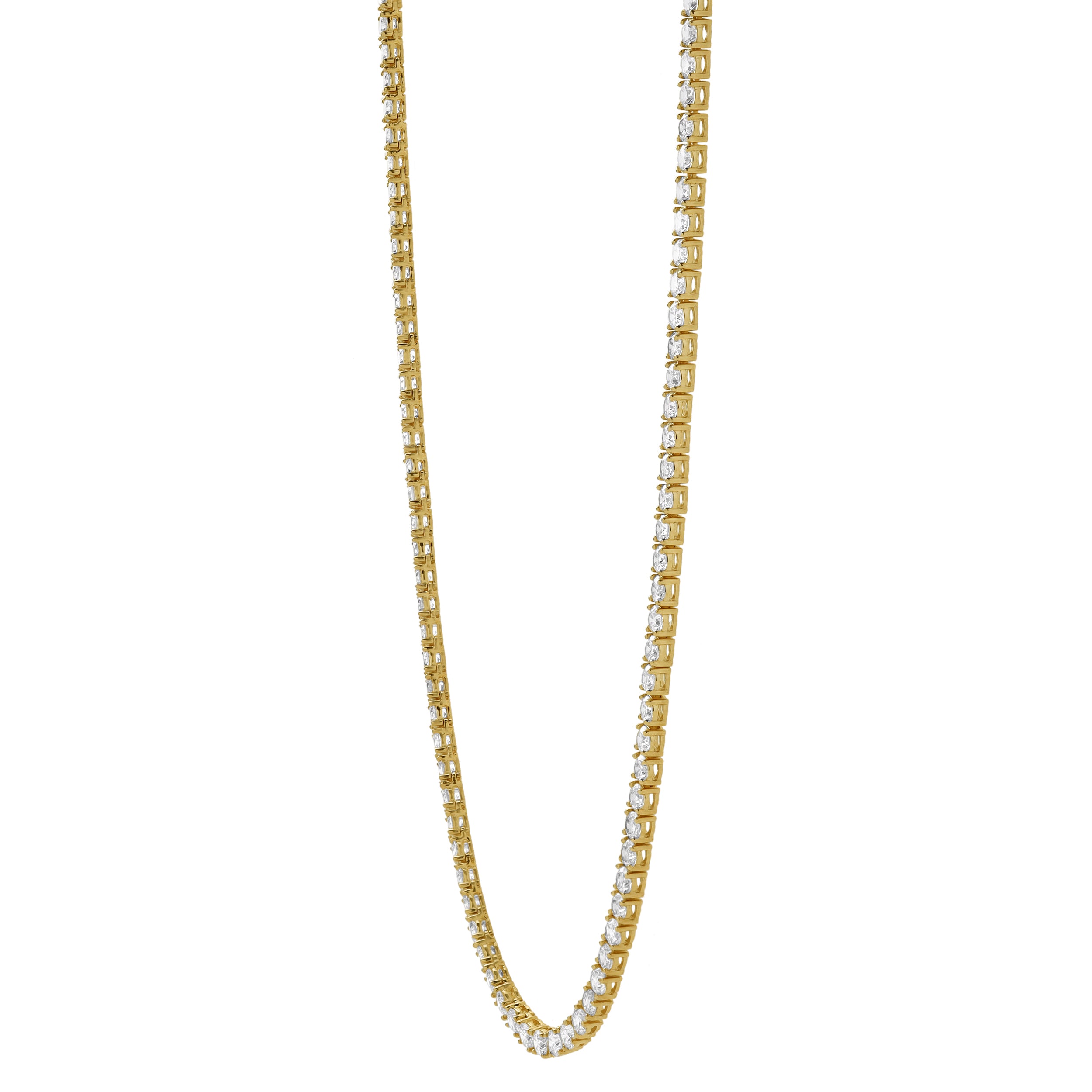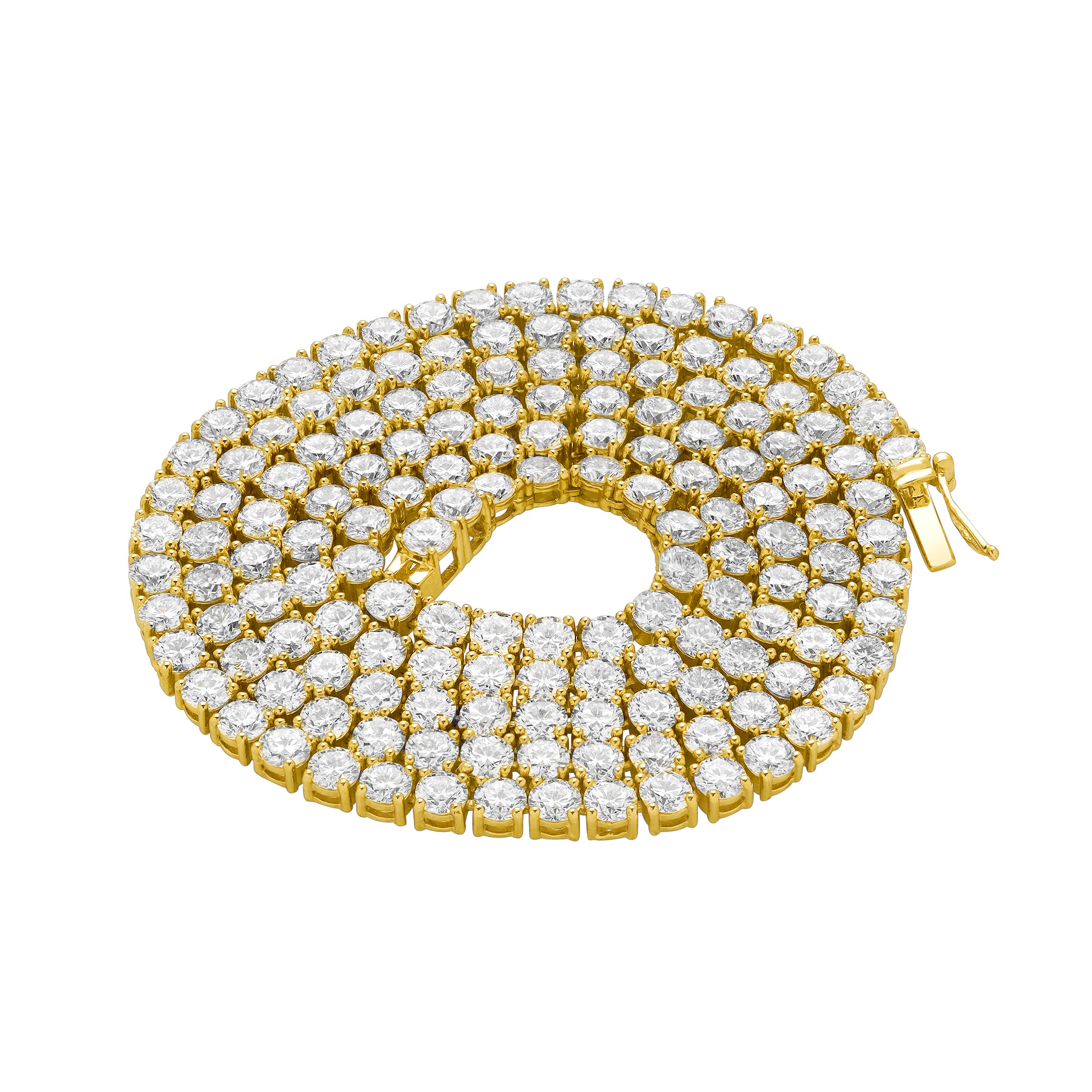 Crafted in 10K Gold this 22 inch tennis chain has a refined 3.6 mm width and exudes timeless elegance. Adorned with 26 to 26.25 carats of EF VVS2/VS1 lab grown diamonds. Its graceful design radiates enduring brilliance.