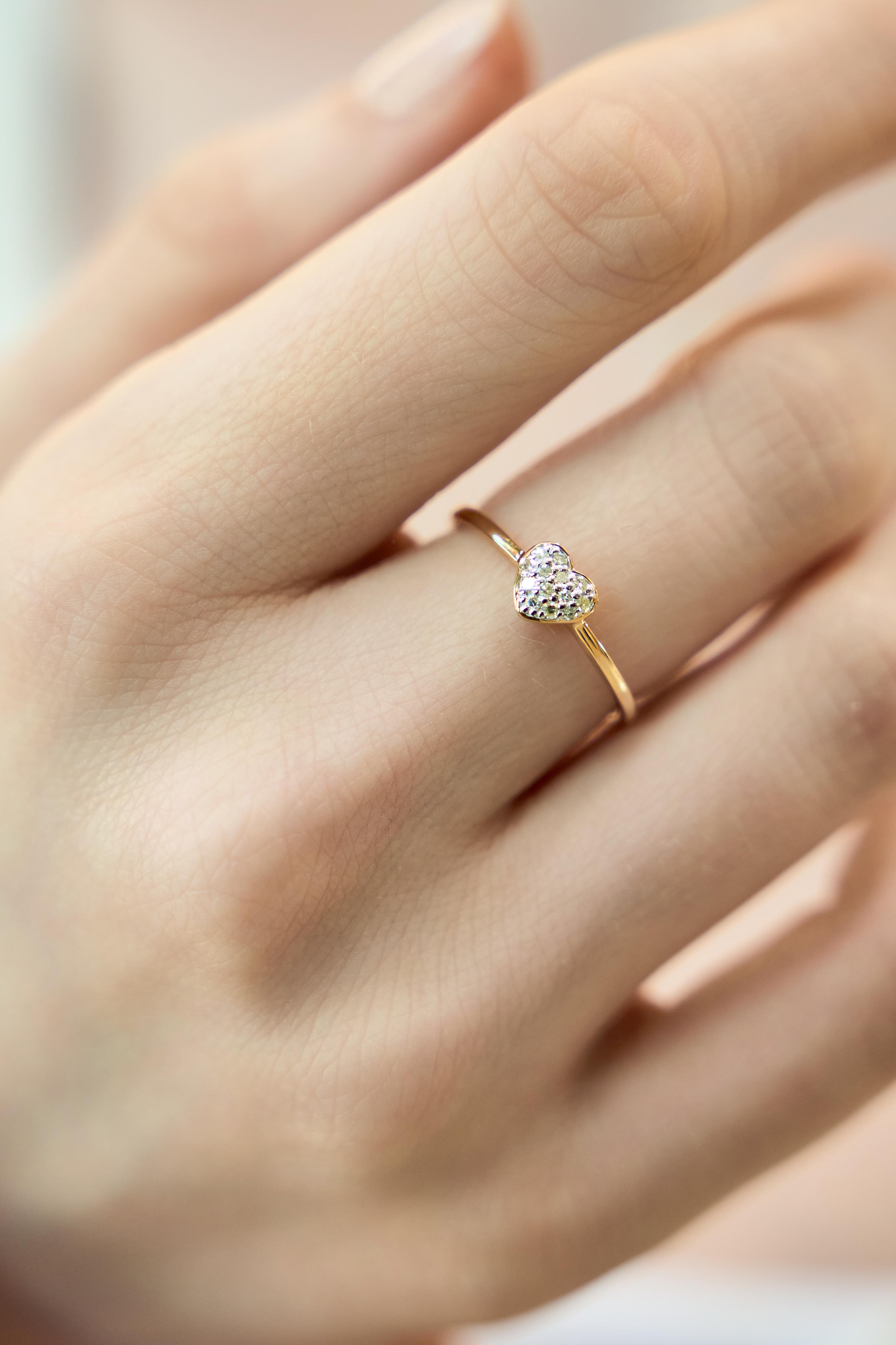 Thea Diamond Pave Heart Ring in 14K Yellow Gold - 0.09 ct