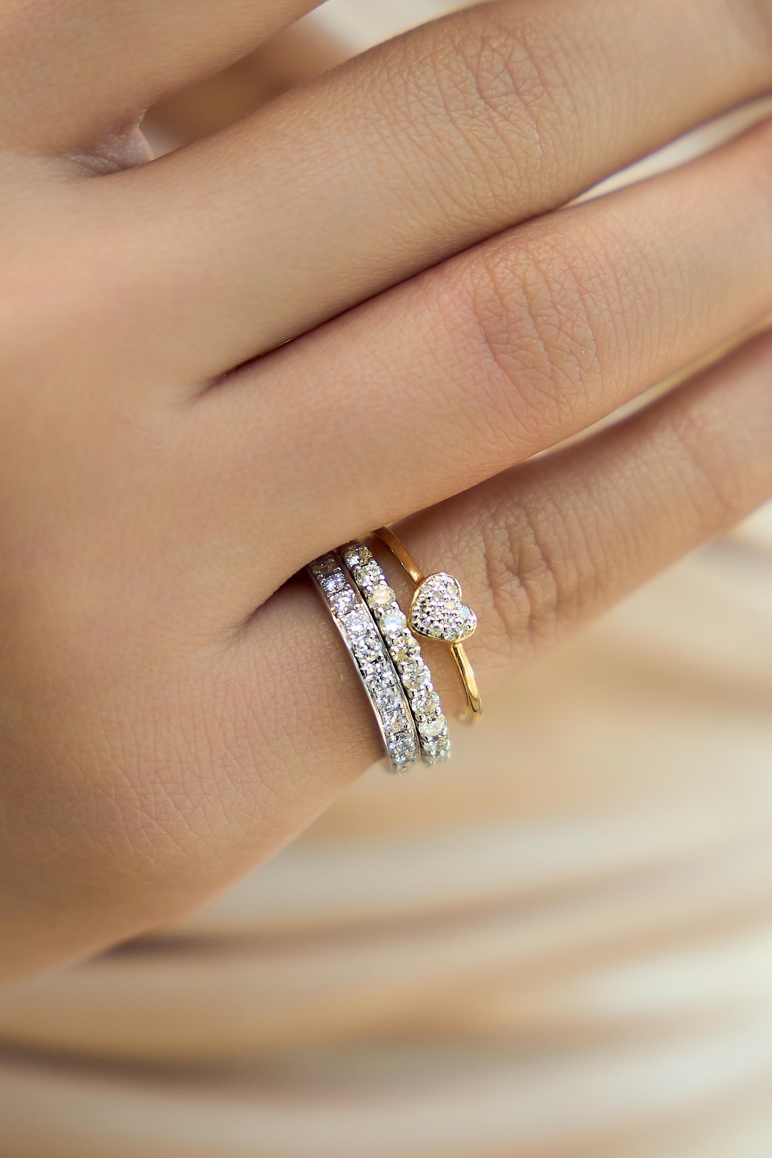 The Thea Pave Heart Ring is petite but full of sparkle. Featuring 0.09 carats of natural diamonds in a heart shape motif on a slim 14K gold band. Perfect for stacking or wearing as a sweet everyday signature.