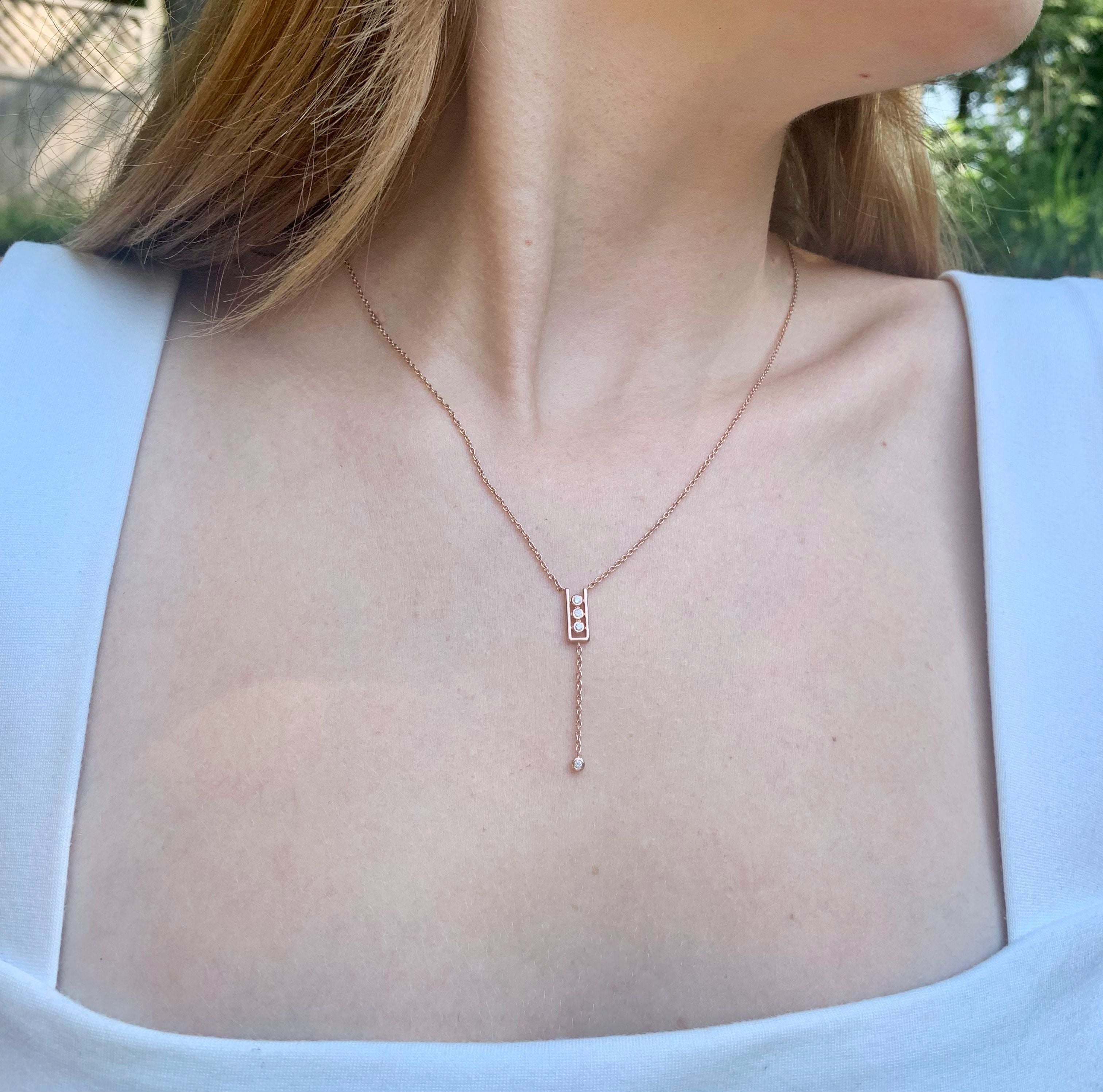 Guide your way to elegance with the Traffic Light Silver Diamond Lariat Necklace. Meticulously crafted for the contemporary woman who values unique design and lasting grace.
