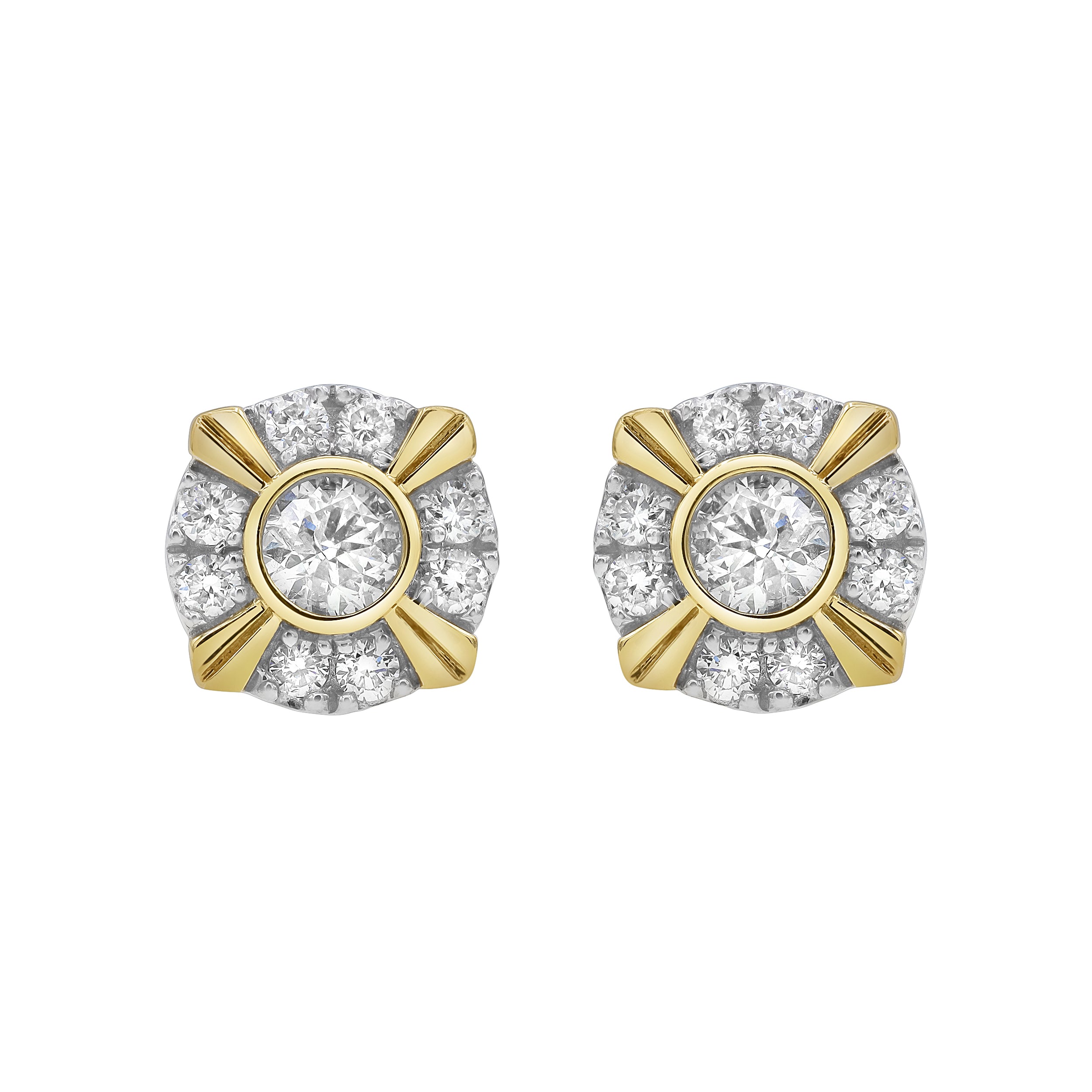 Tudor Stud 14K Yellow Gold Diamond Earrings 0.76 ct. tw.