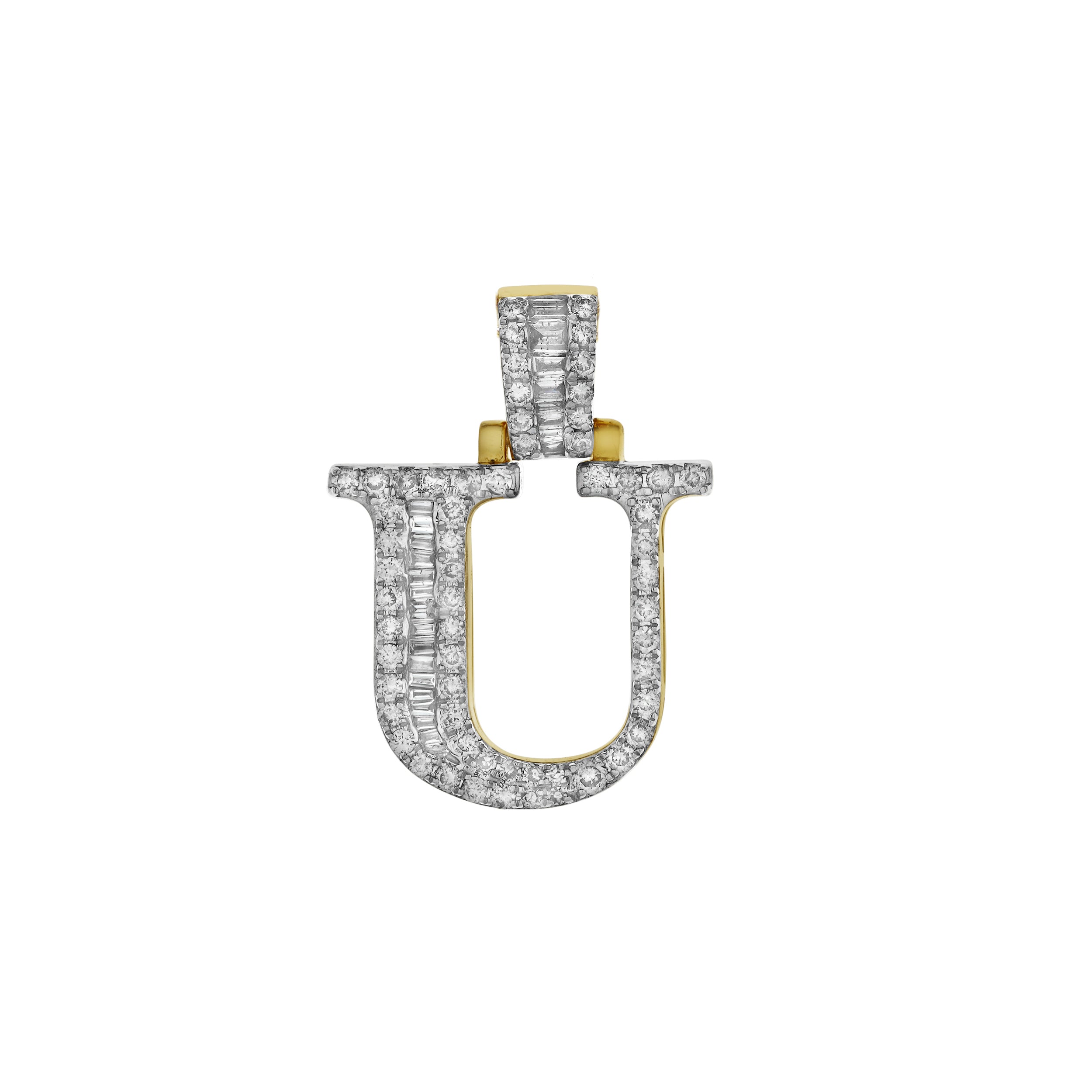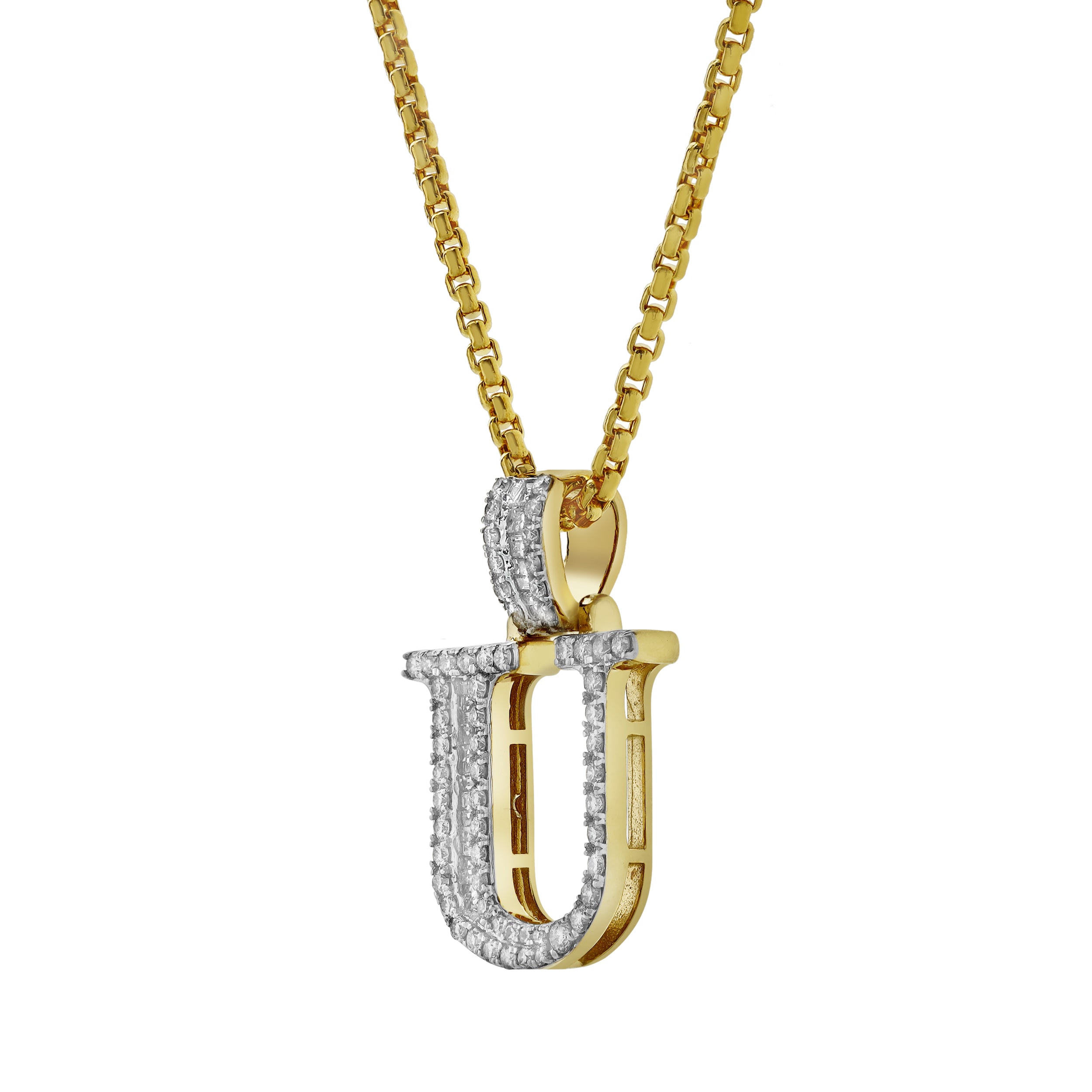 Crafted in 10K Yellow Gold this U initial pendant showcases 0.69 carats of G SI1 diamonds with an elegant profile and expert craftsmanship. CHAIN NOT INCLUDED.