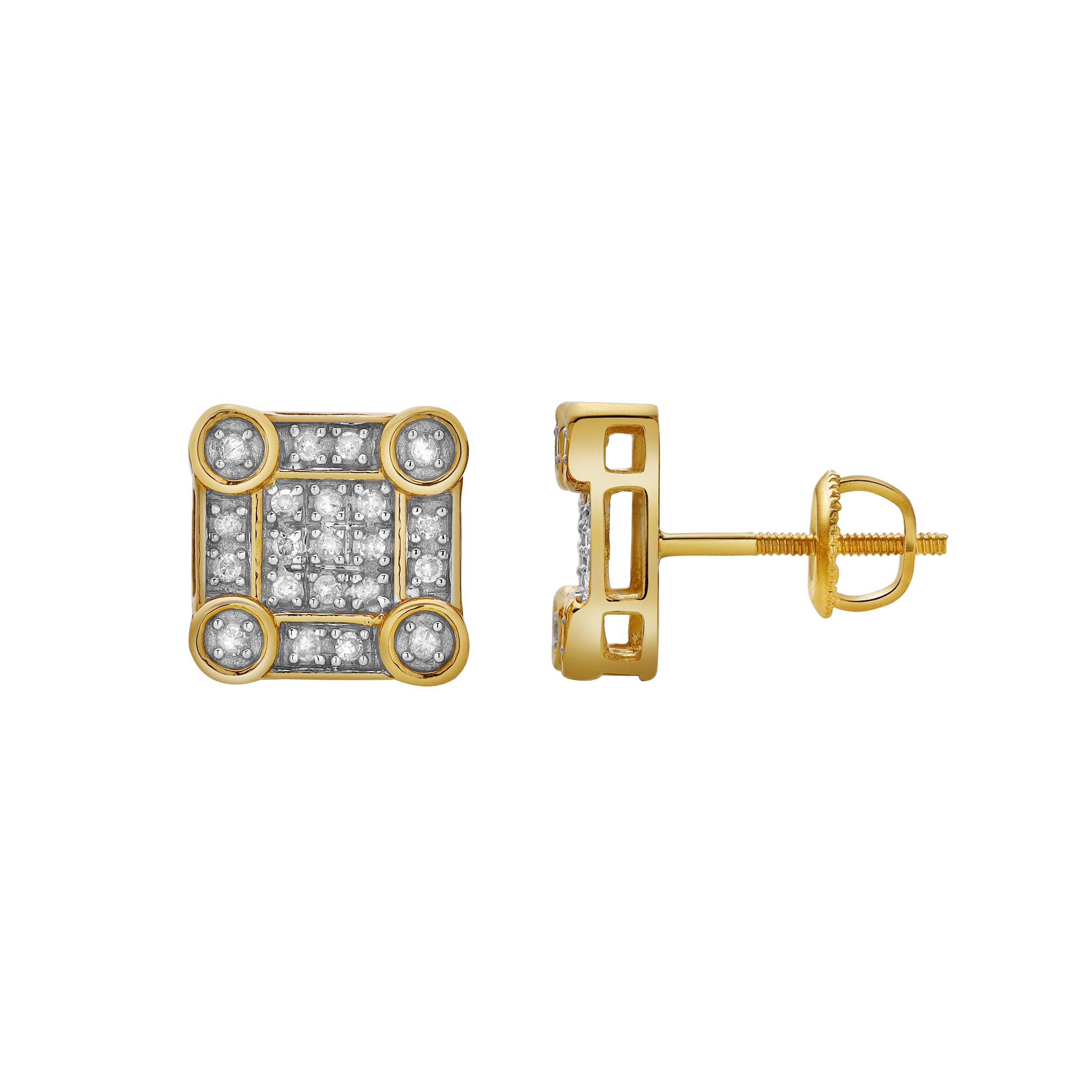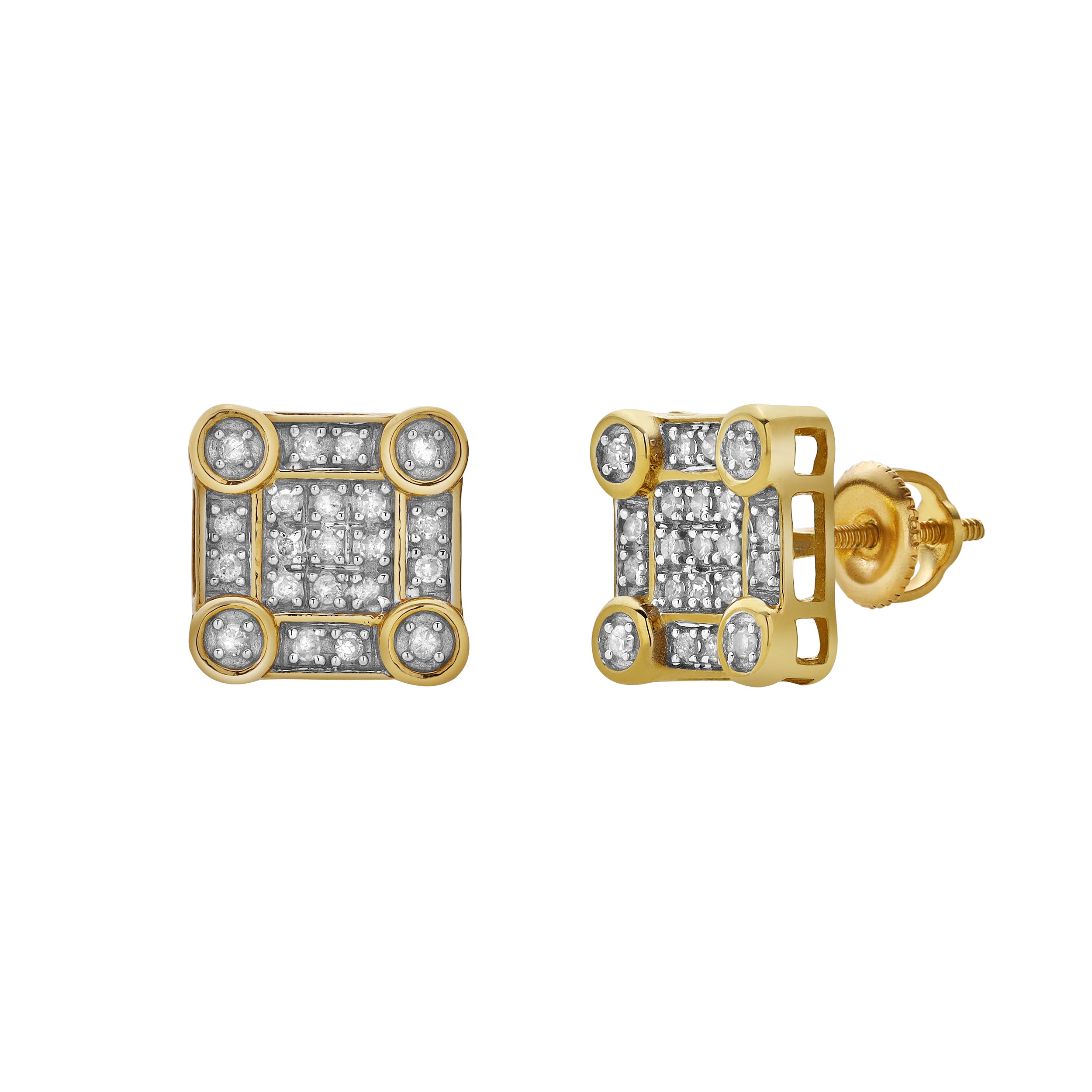 Veil 10K Yellow Gold Cluster Diamond Unisex Earrings - 0.19 Cts