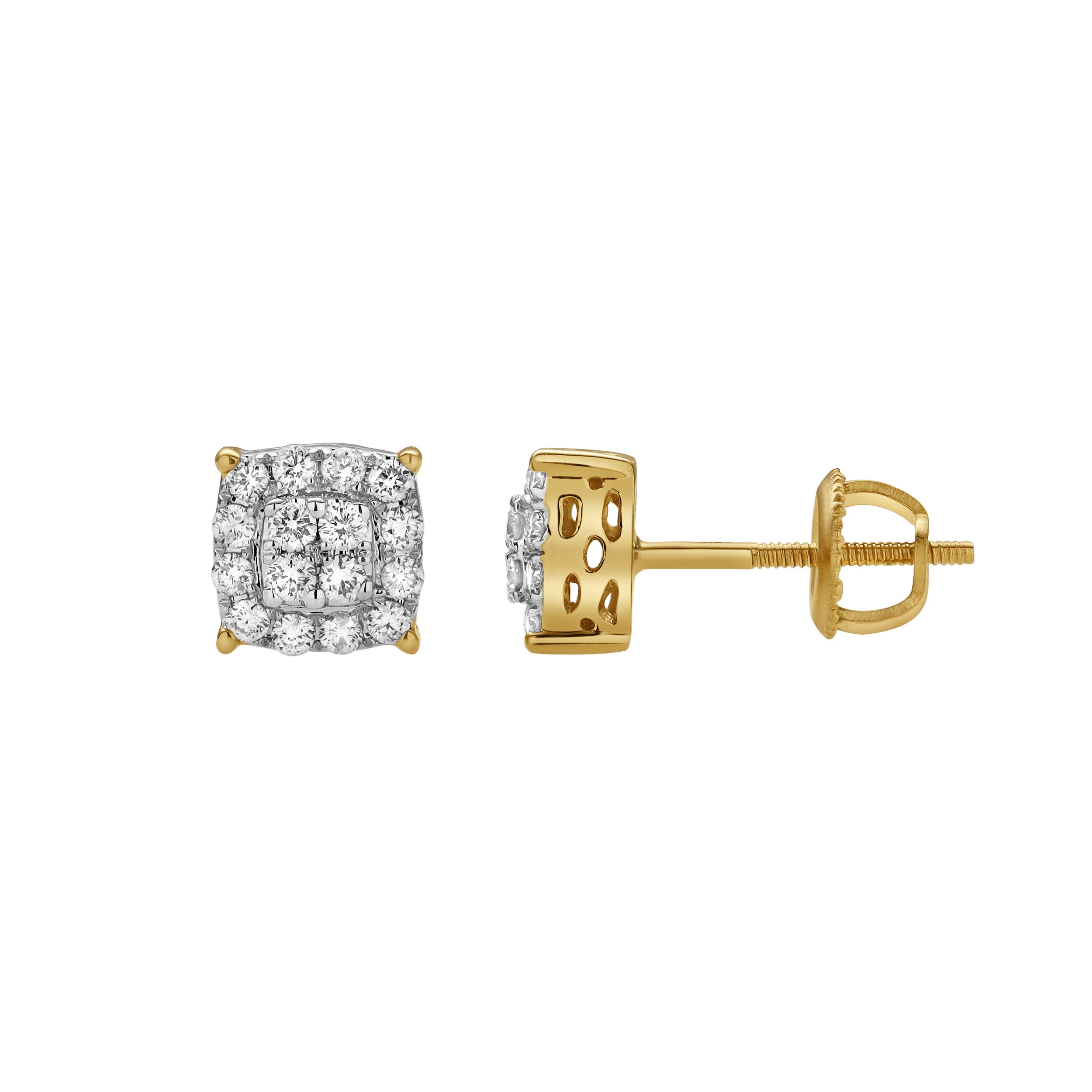 Virelle 10K Yellow Gold Cluster Diamond Unisex Earrings - 0.31 Cts