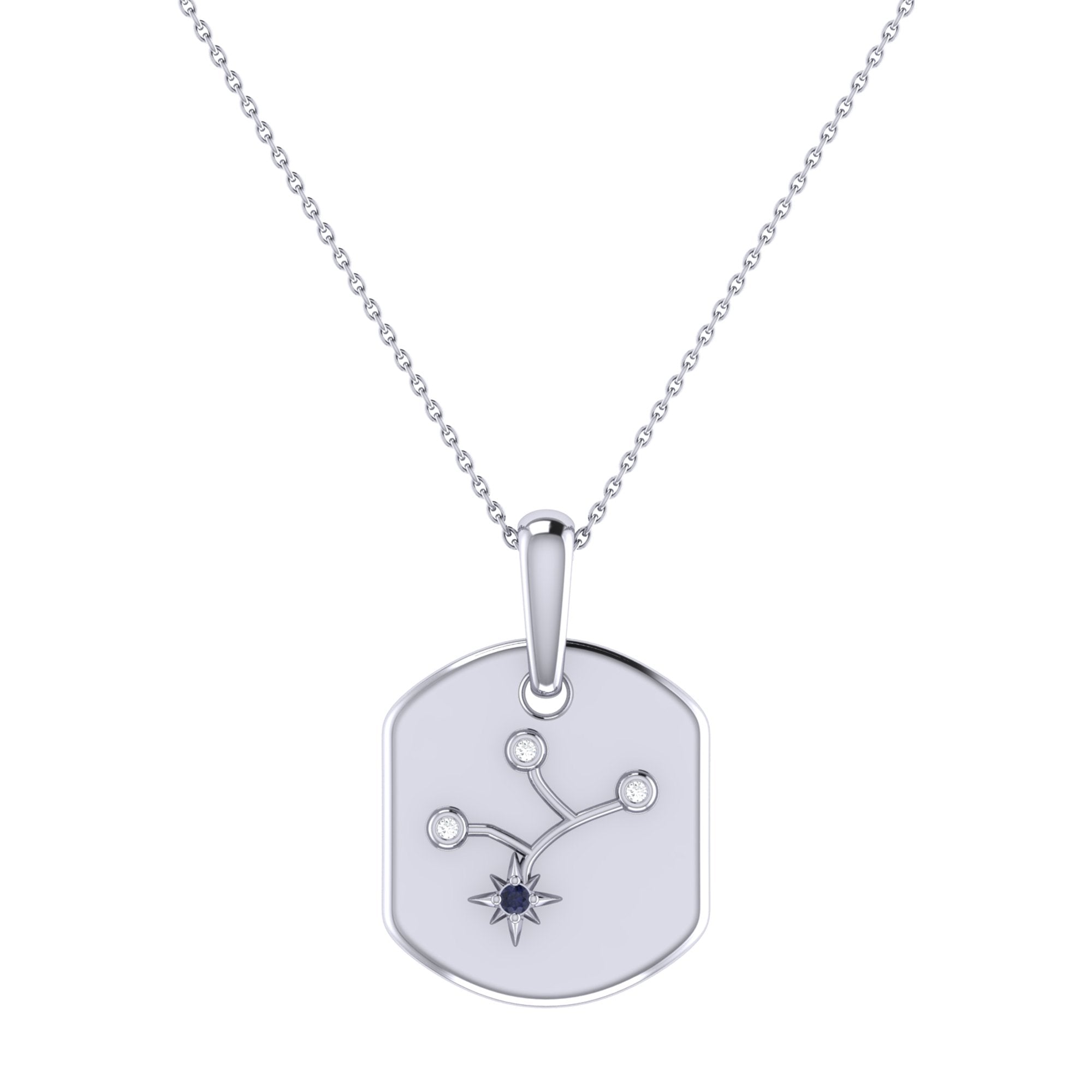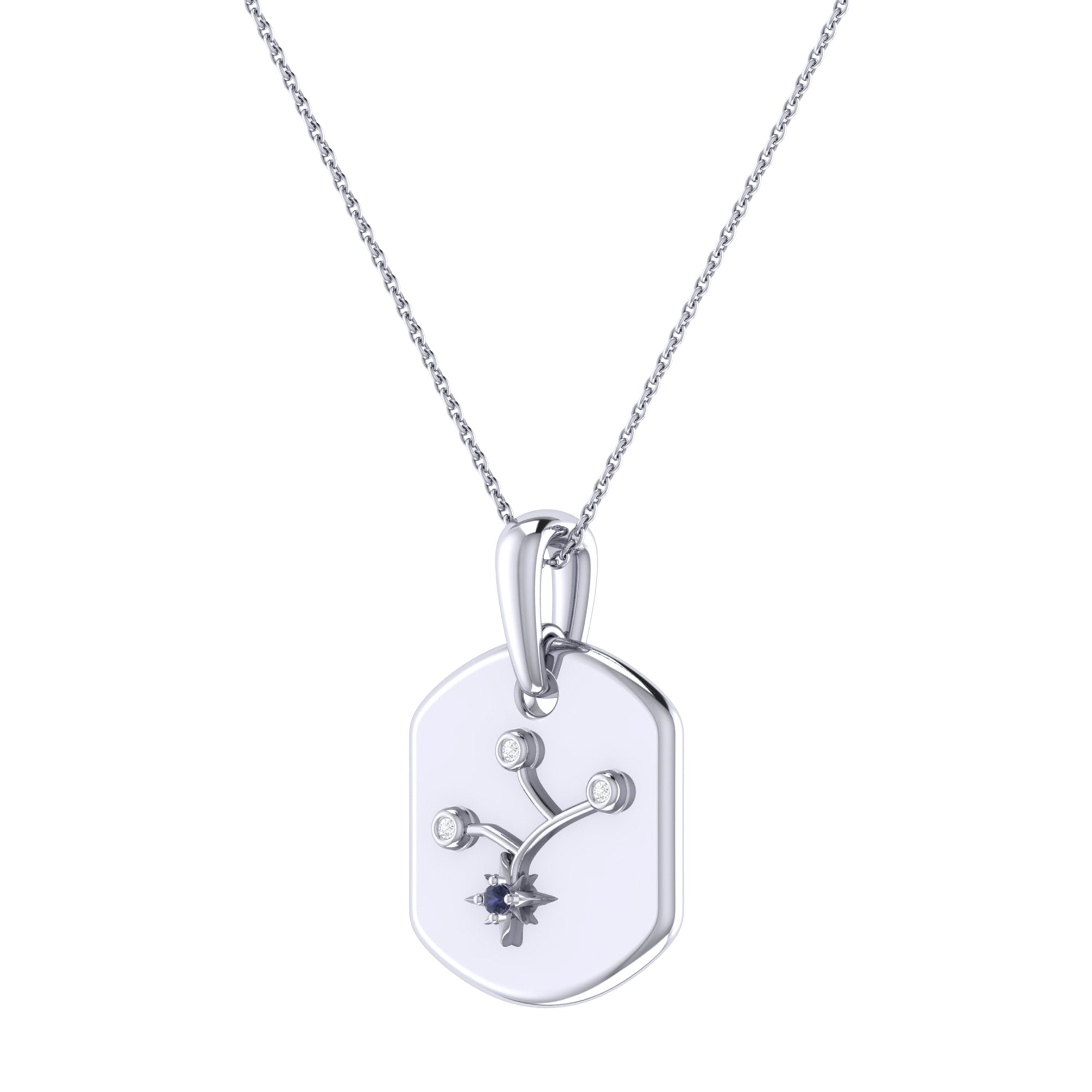 Virgo Maiden Blue Sapphire & Diamond Constellation Tag Pendant Necklace in 14K White Gold