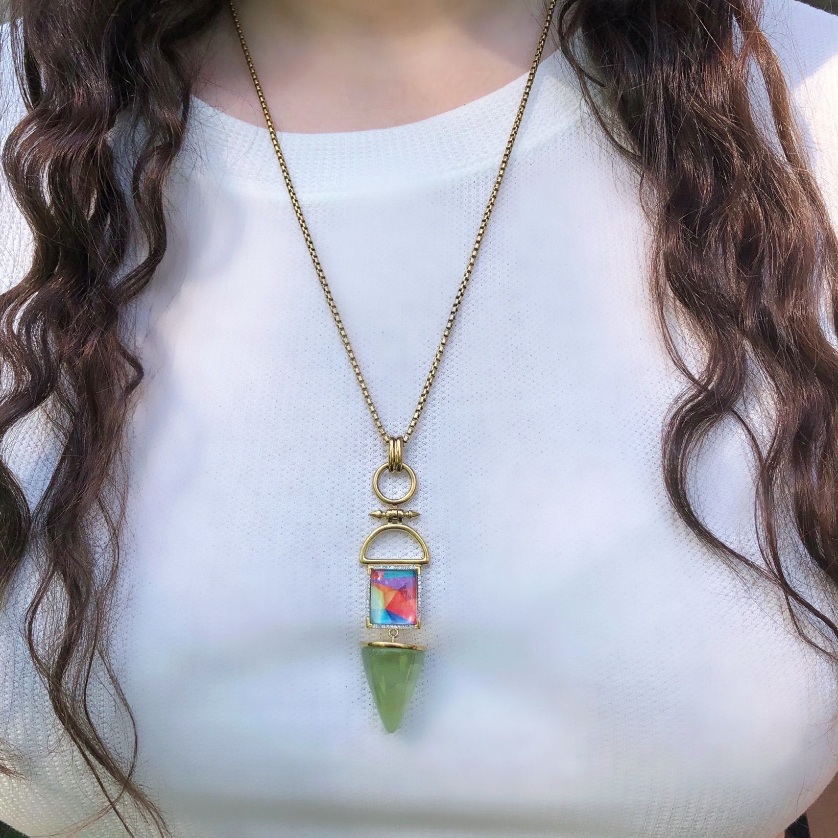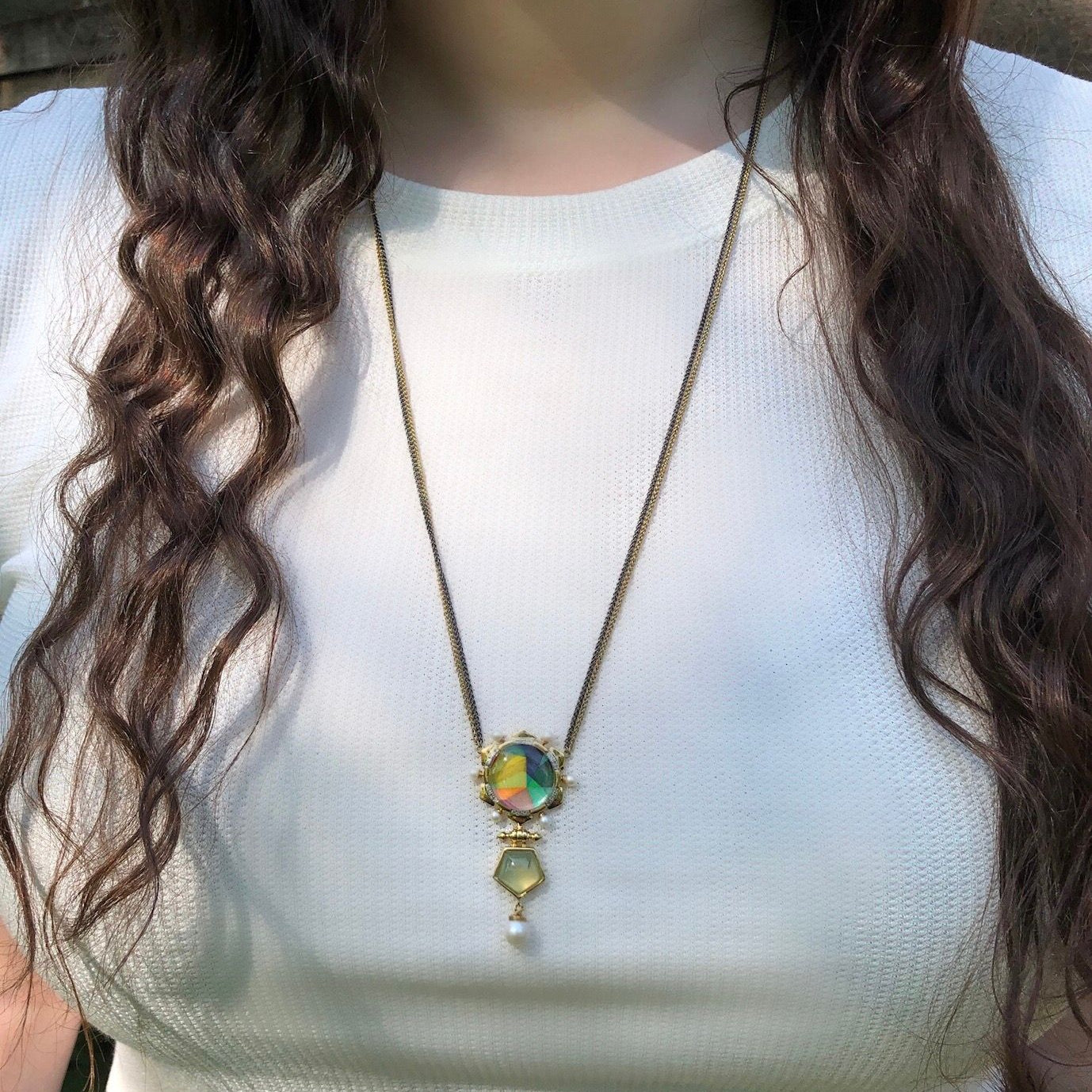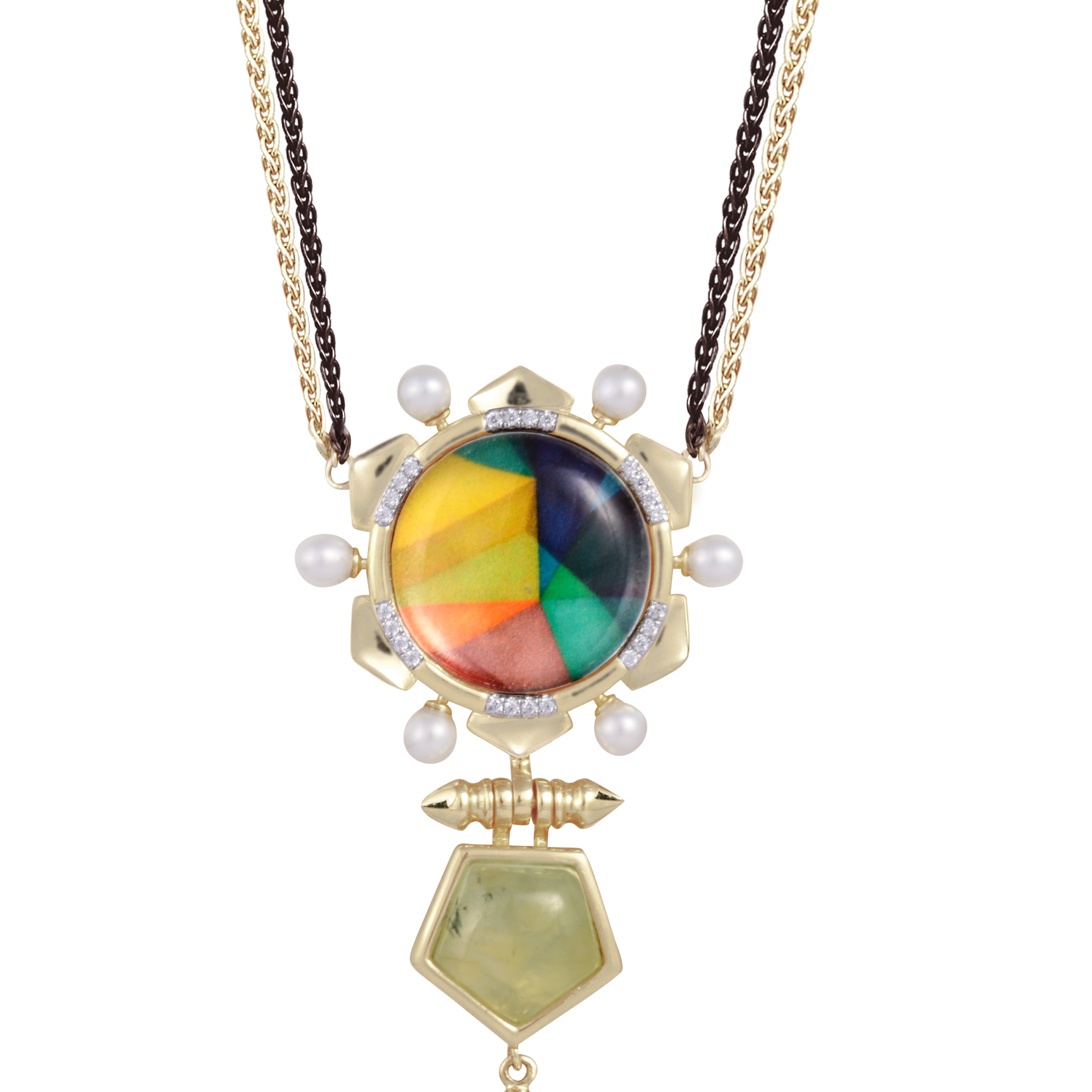 Gypsy Soul Prehnite & Pearl Diamond Necklace in 14K Yellow Gold Plated Sterling Silver