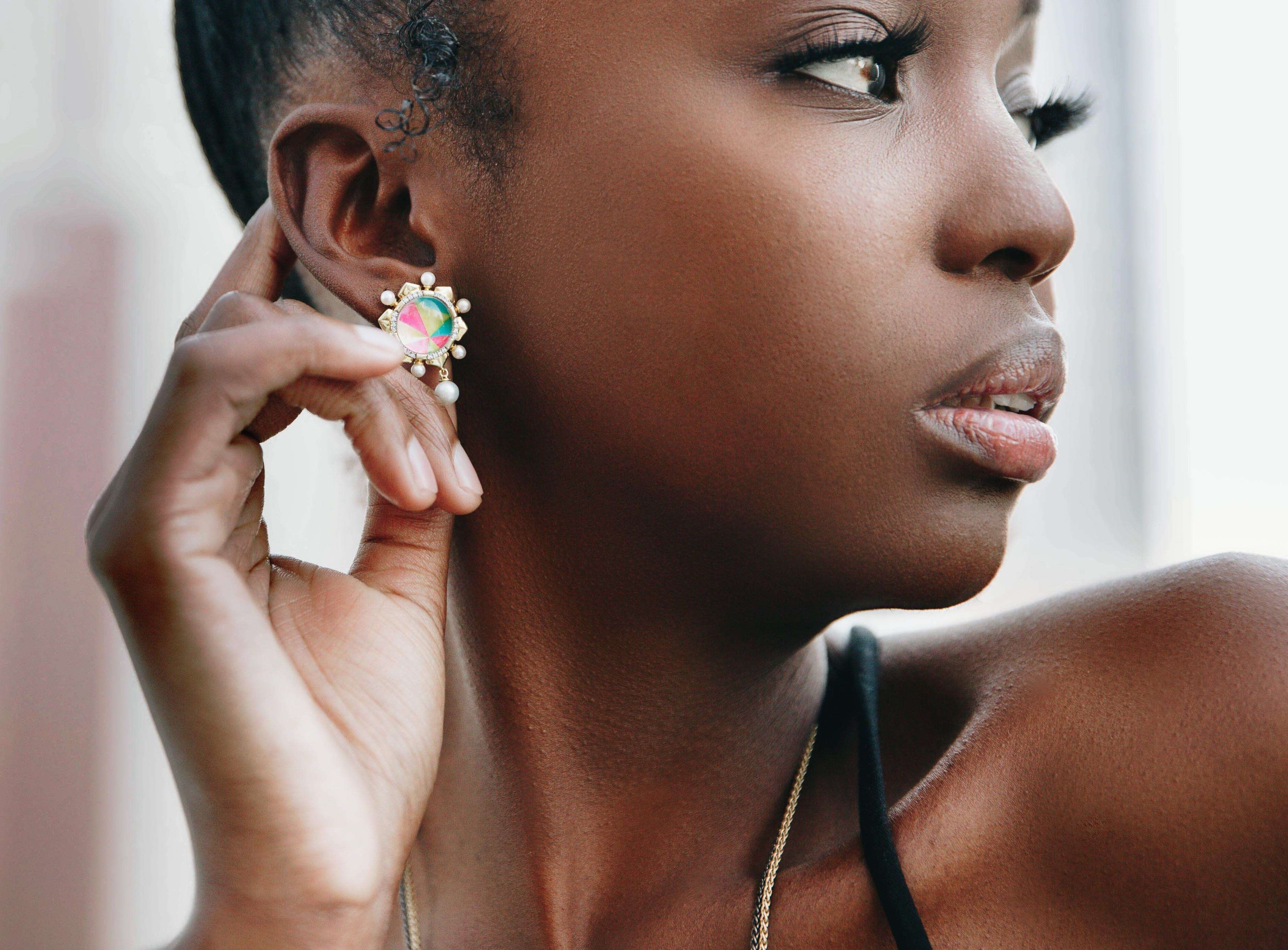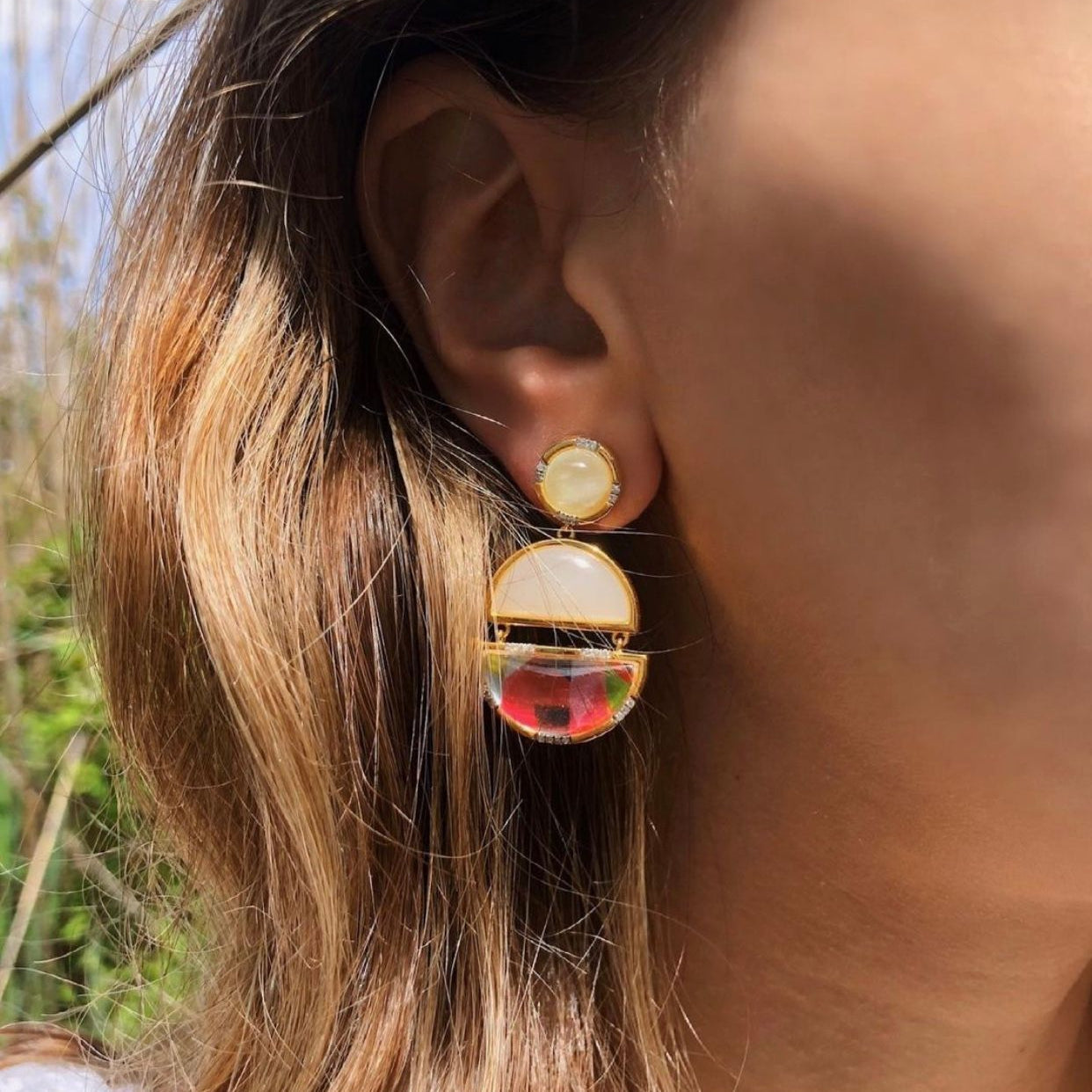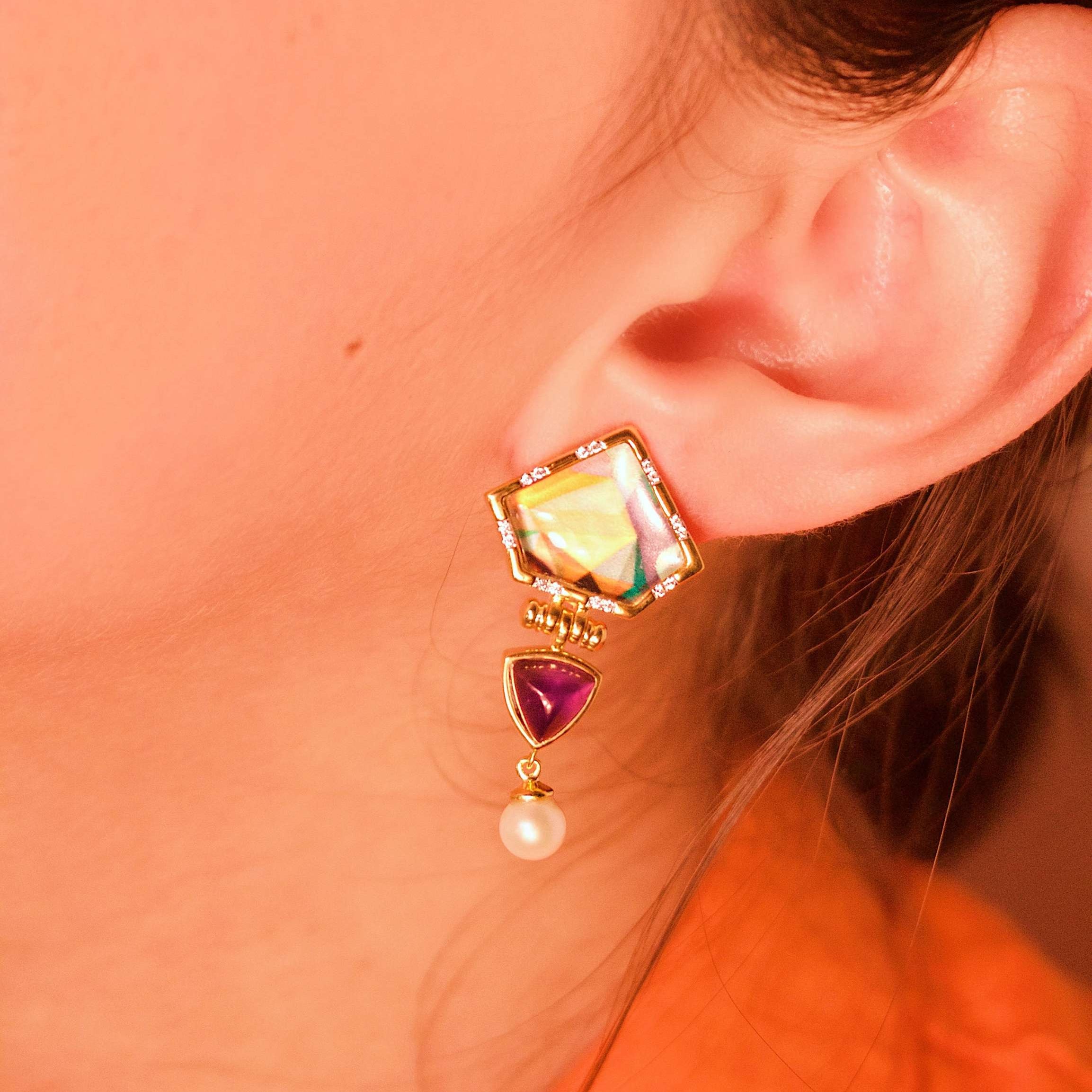 Unicorn Popcorn Pearl & Diamond Mosaic Tops in 14K Yellow Gold Plated Sterling Silver