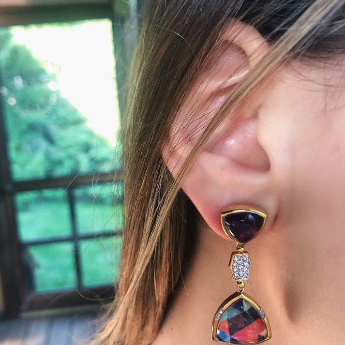 Love Me Not Amethyst Diamond Mosaic Earrings in 14K Yellow Gold Plated Sterling Silver