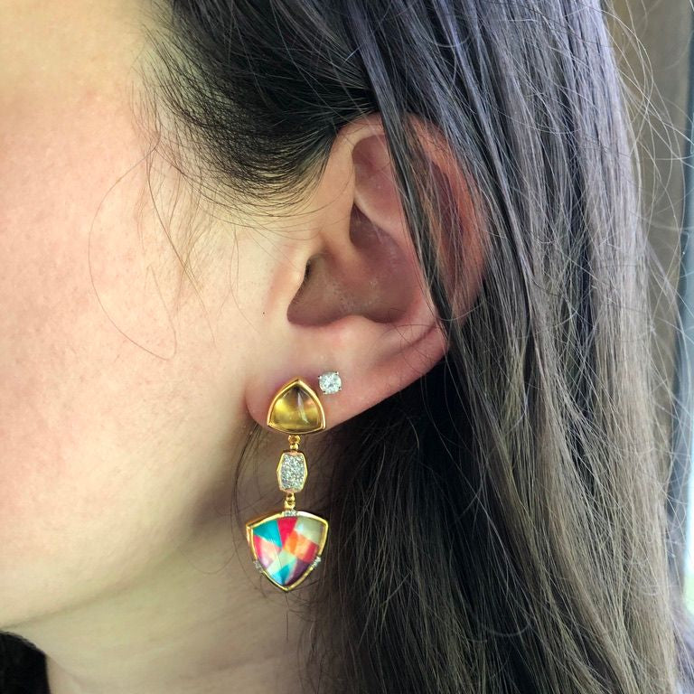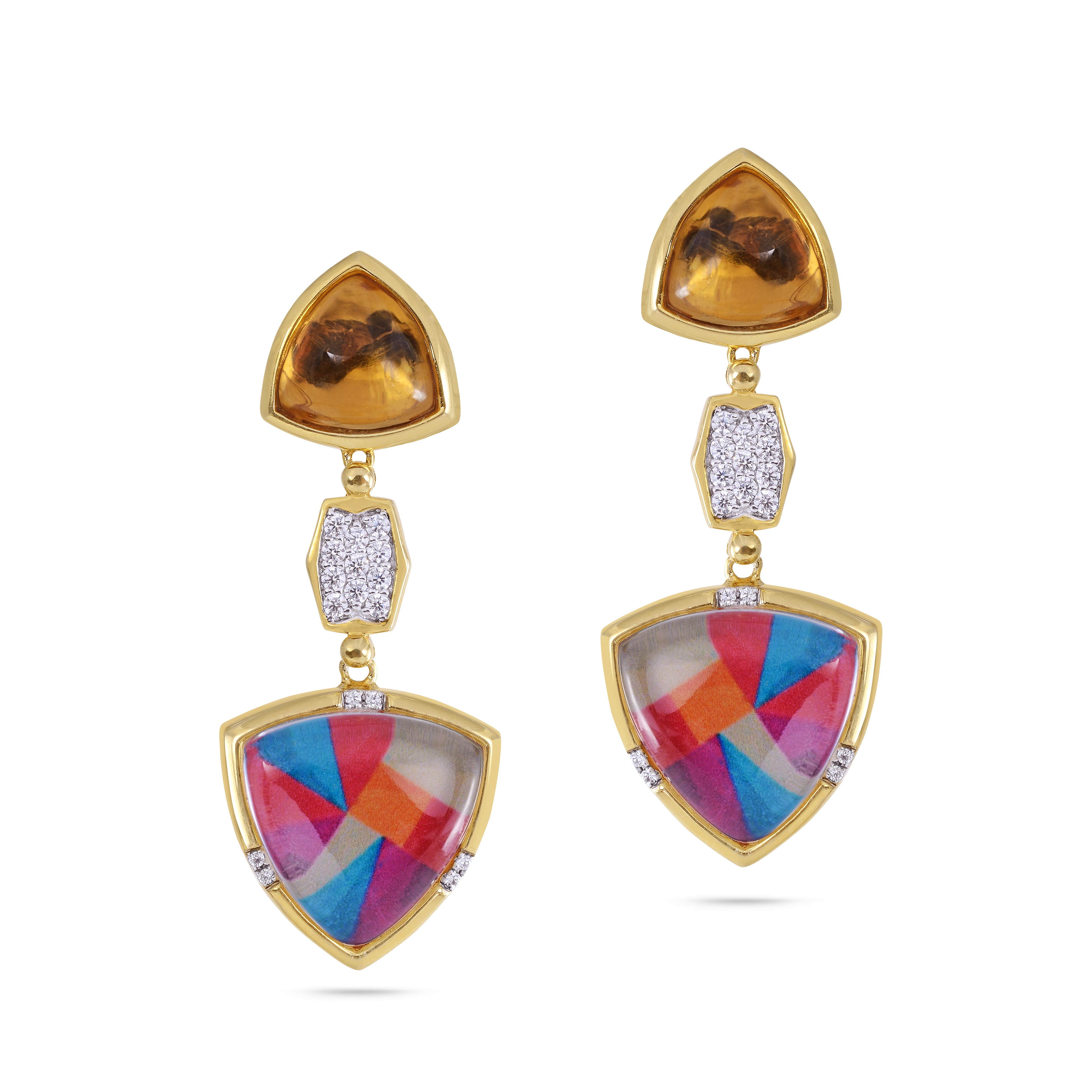 Colorful Canvas Diamond & Citrine Earrings in 14K Yellow Gold Plated Sterling Silver