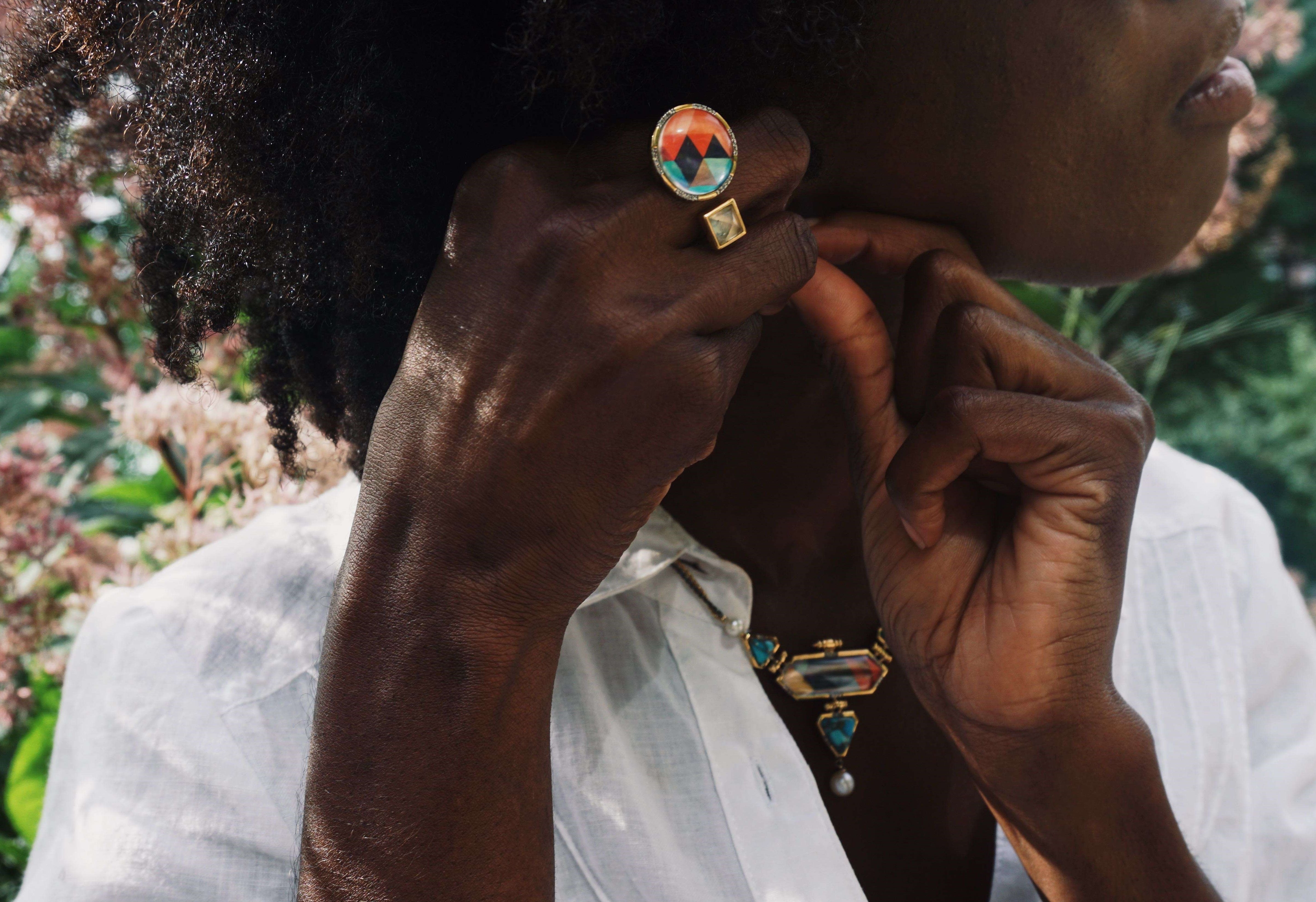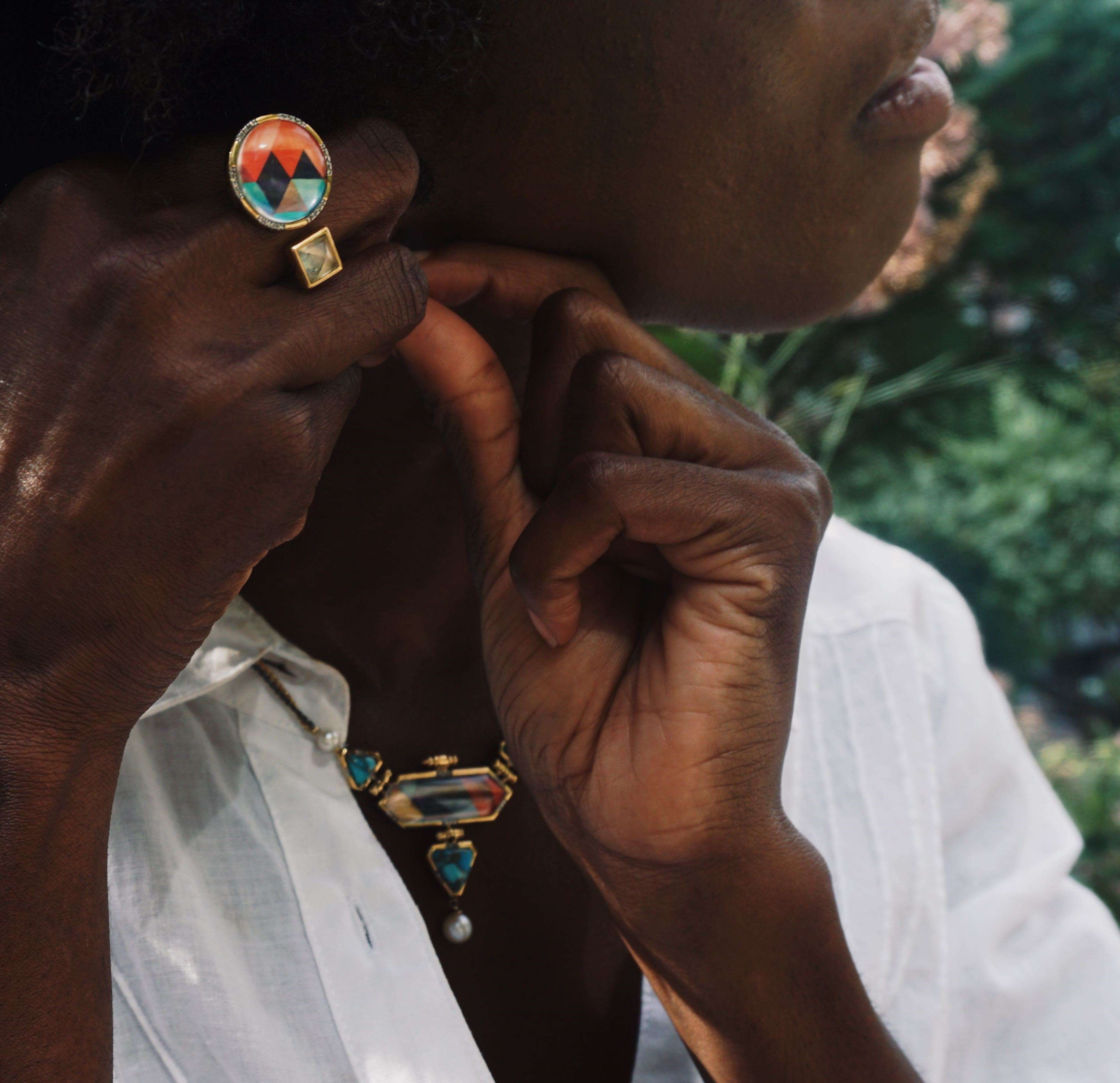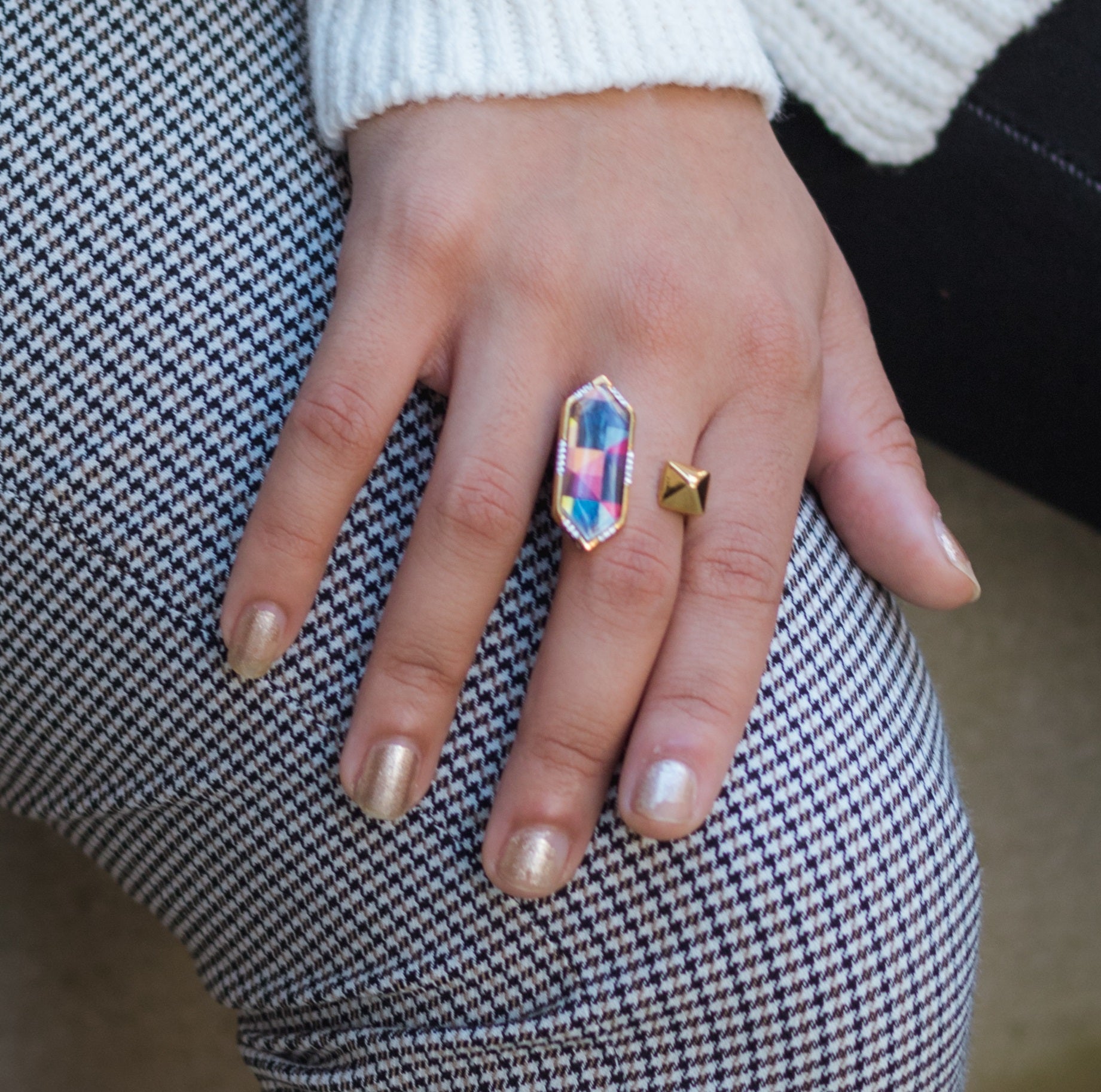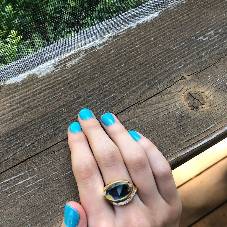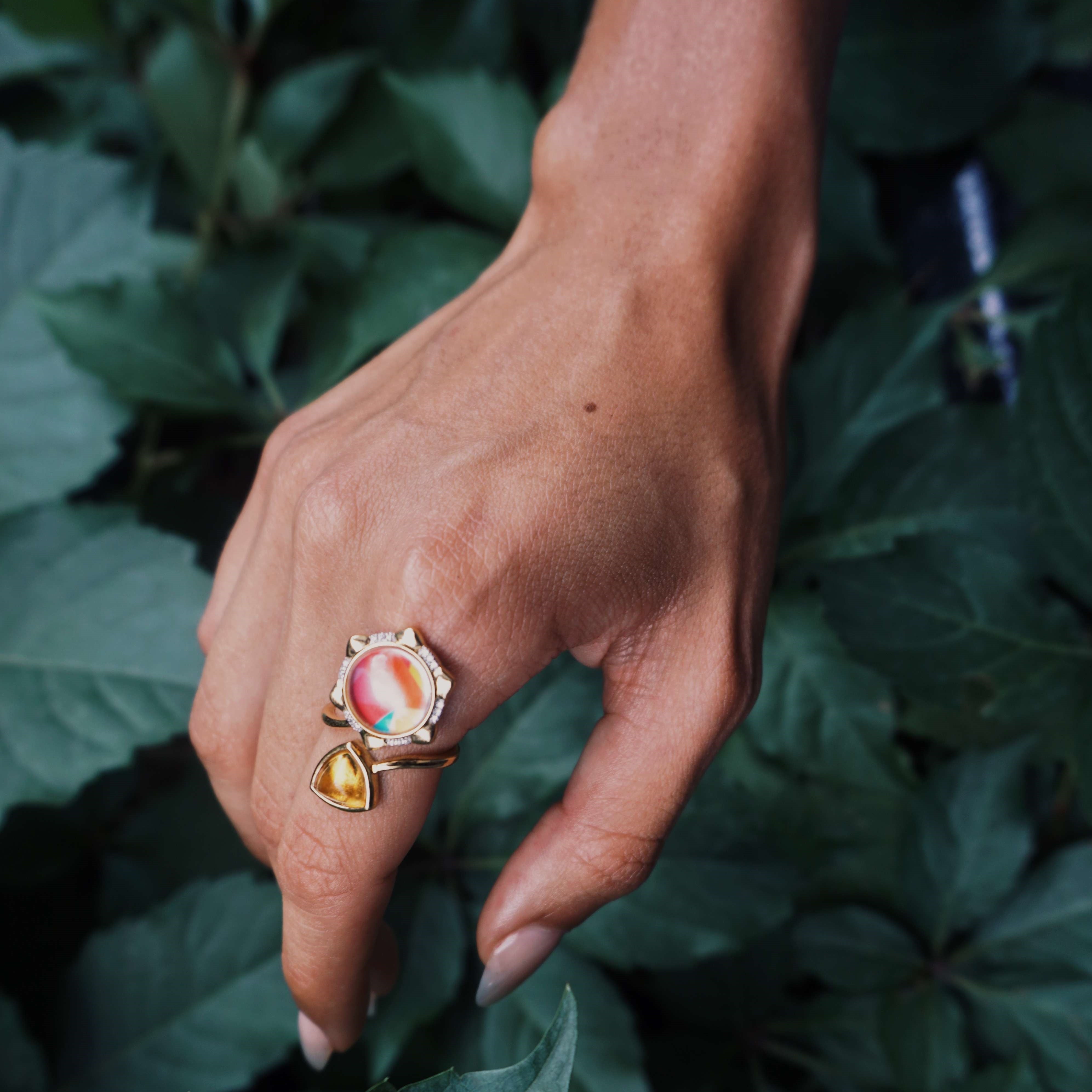 Drama Queen Oval Diamond Mosaic Ring in 14K Yellow Gold Plated Sterling Silver