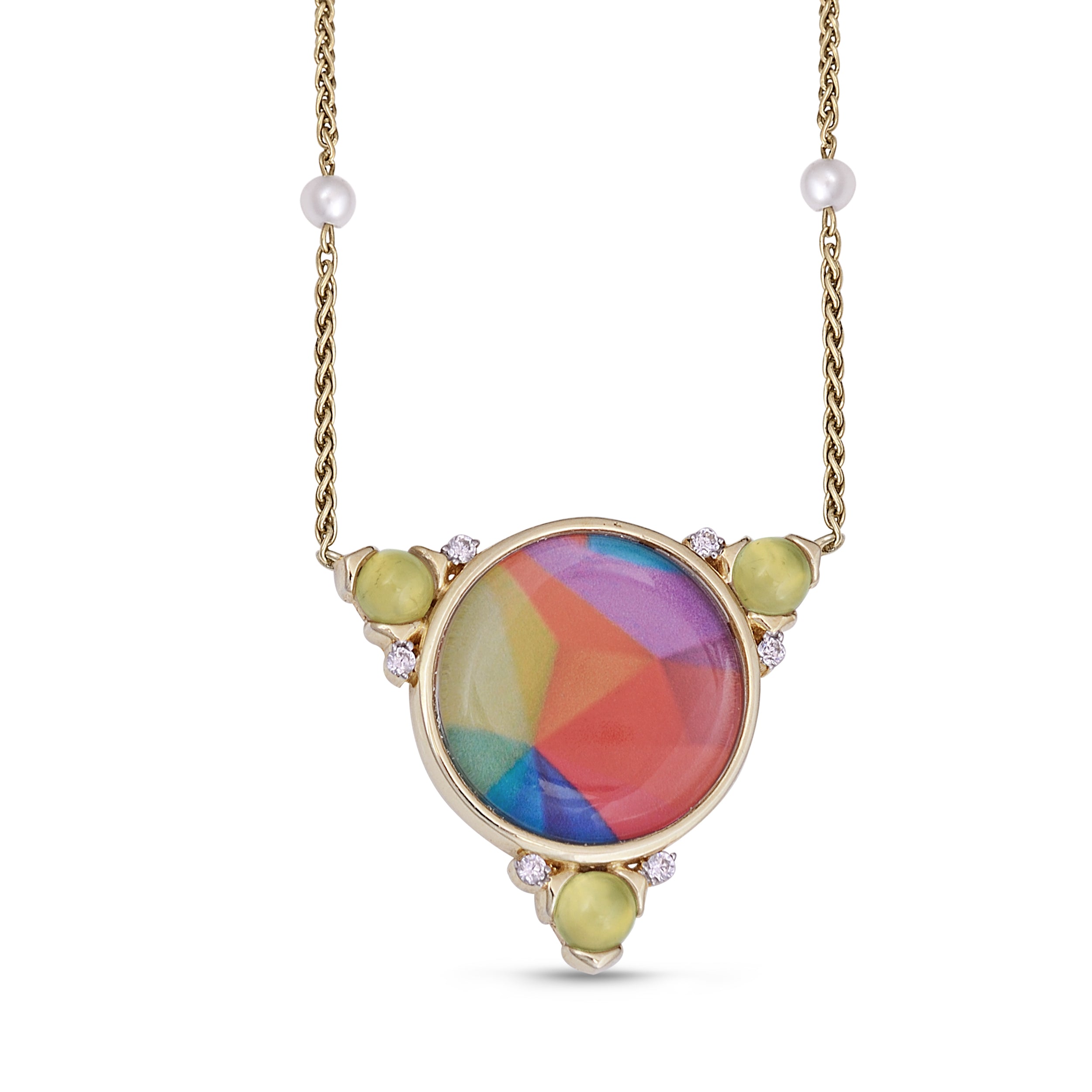 Sprinkle of Color Prehnite & Diamond Necklace with Pearls in 14K Yellow Gold Plated Sterling Silver