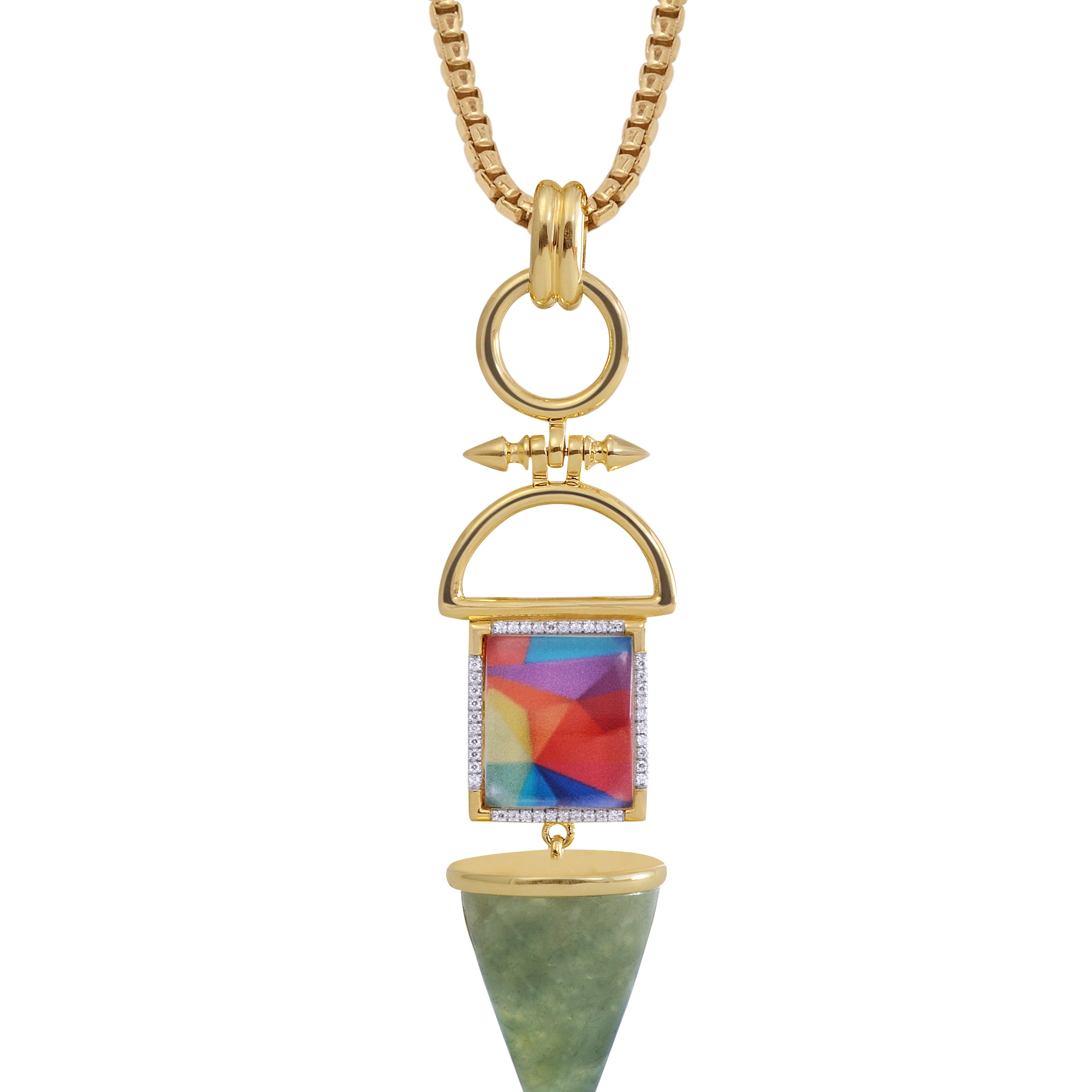 Splashy Flashy Prehnite & Diamond Mosaic Necklace in 14K Yellow Gold Plated Sterling Silver