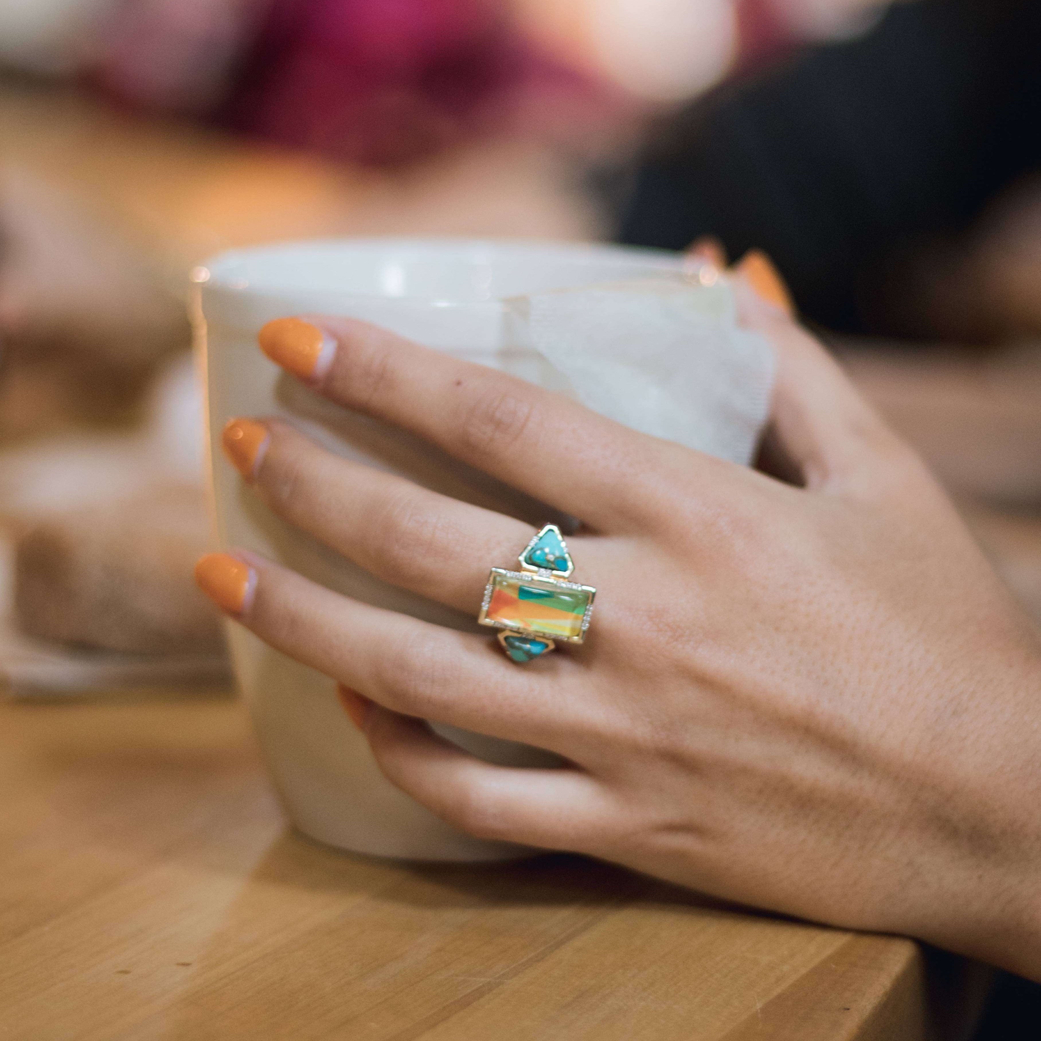 Wild & Free Diamond Mosaic Turquoise Ring in 14K Yellow Gold Plated Sterling Silver