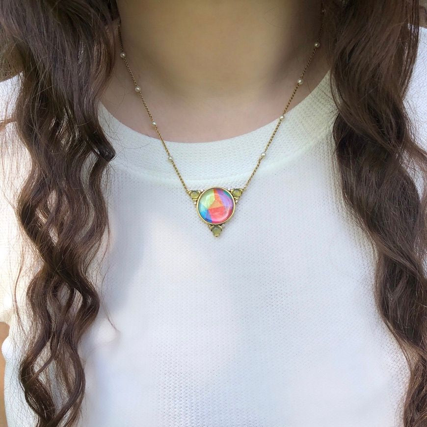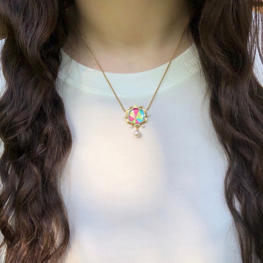 Pops of Passion Pearl & Diamond Mosaic Necklace in 14K Yellow Gold Plated Sterling Silver