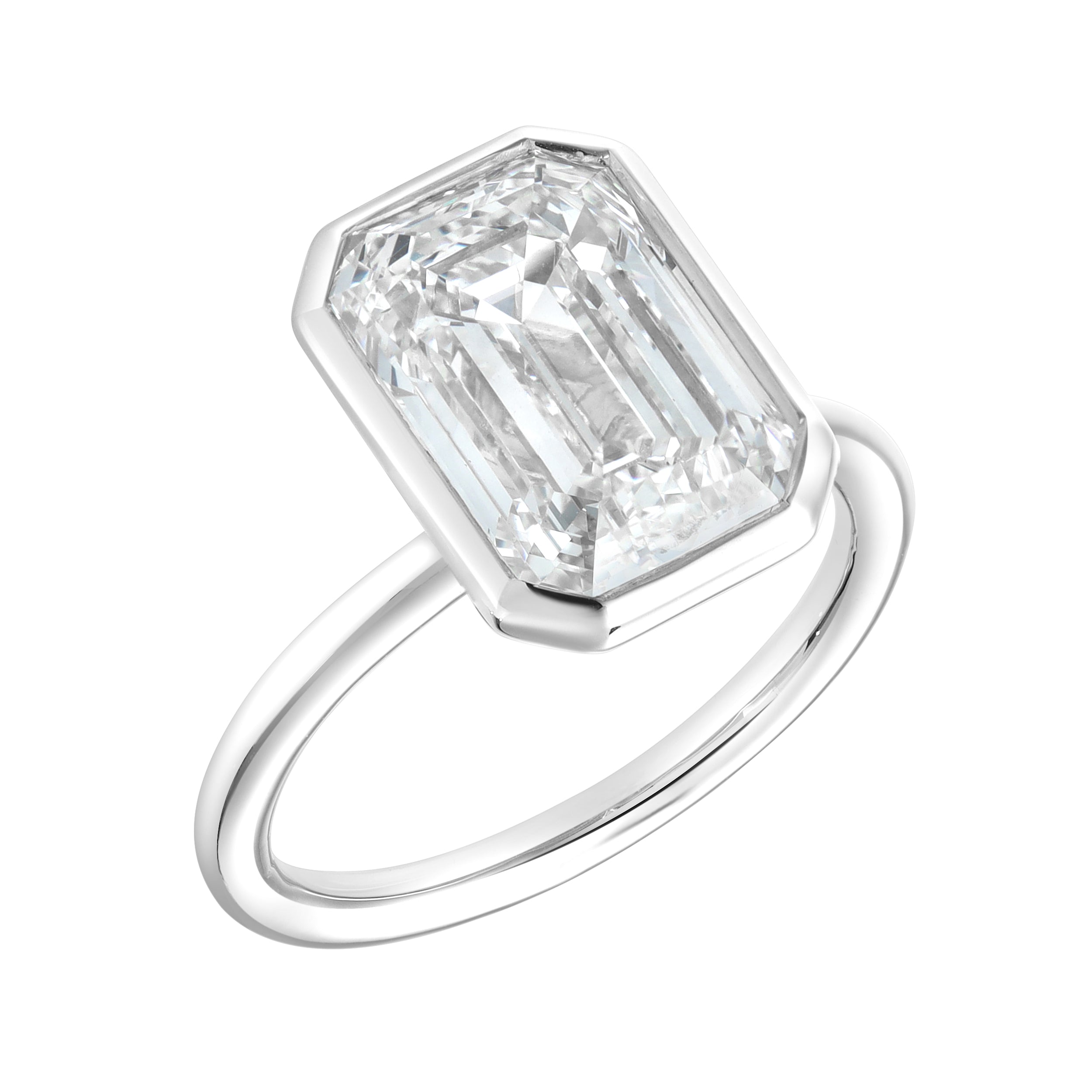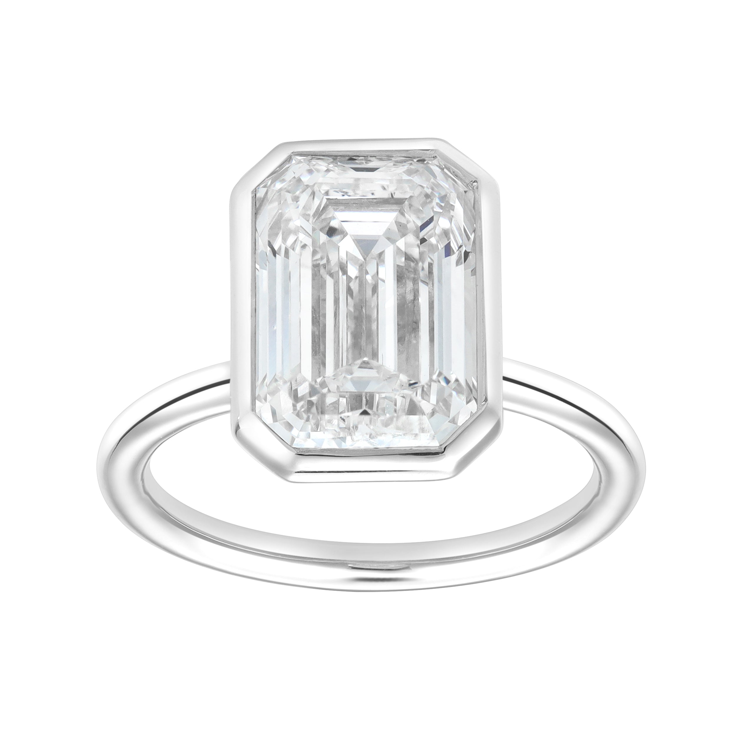 Alessia 14K White Gold Emerald Cut Lab Grown Diamond Bezel Solitaire Engagement Ring – 3 cts