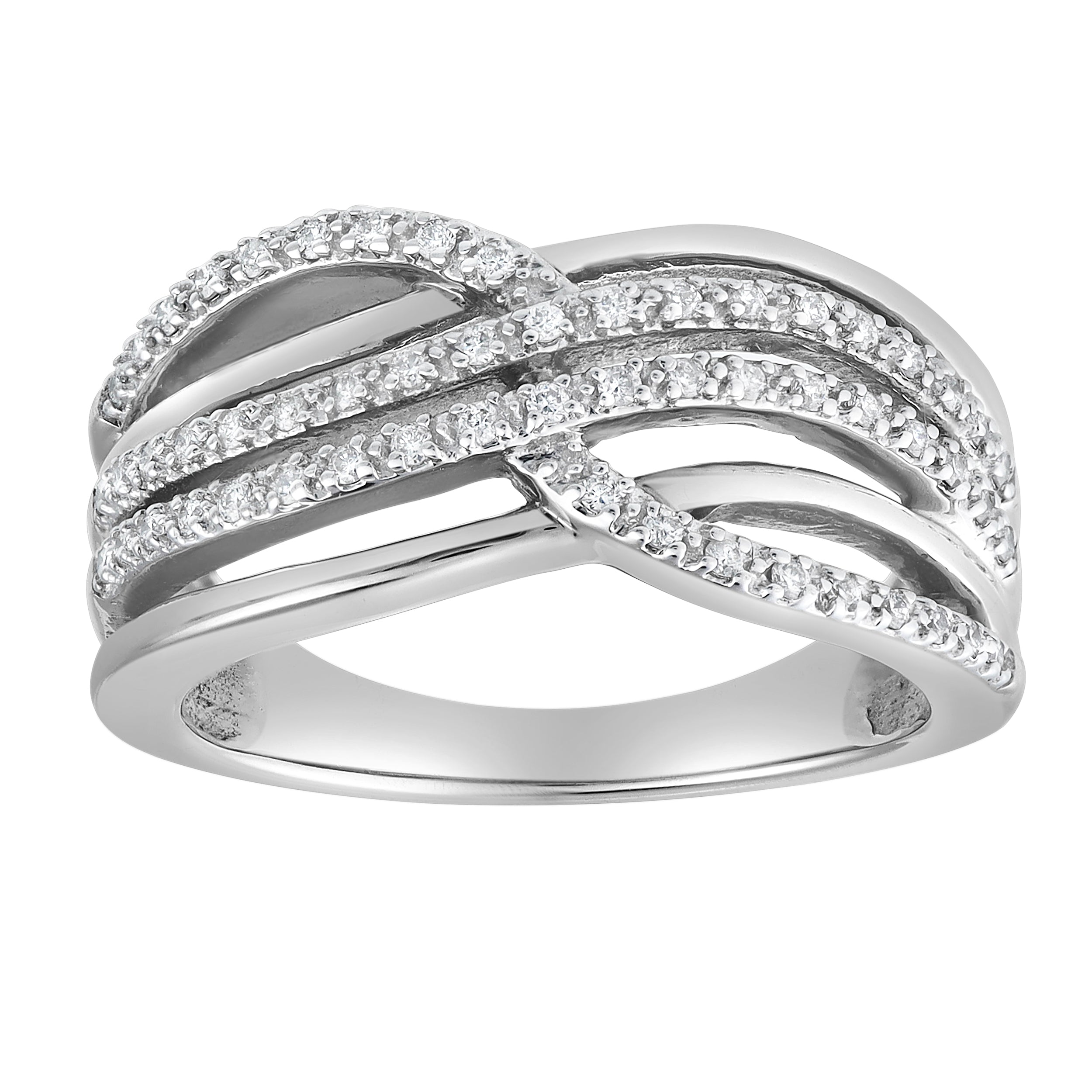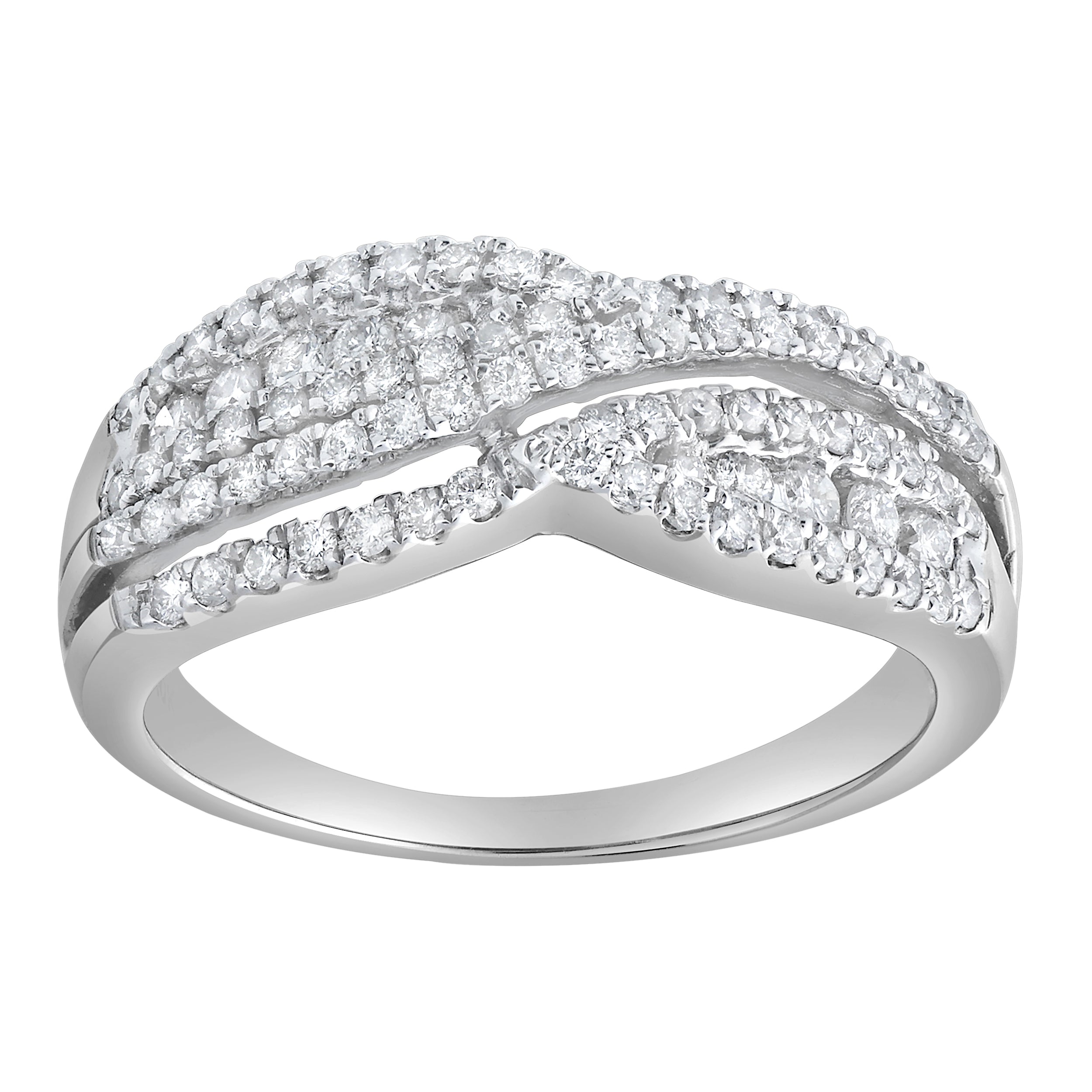 Nexus 14K White Gold Round Diamond Studded Crossover Band Ring - 0.24cts