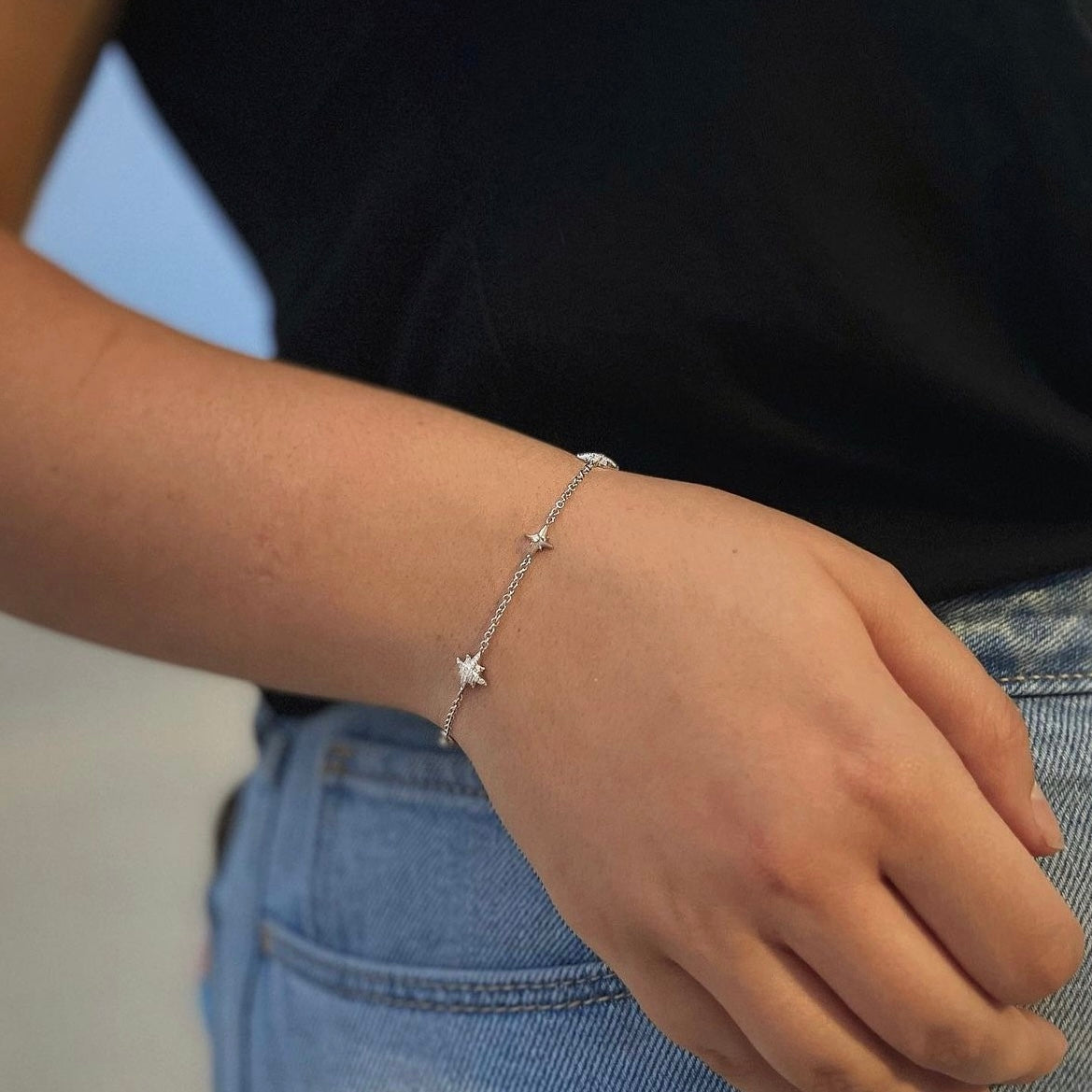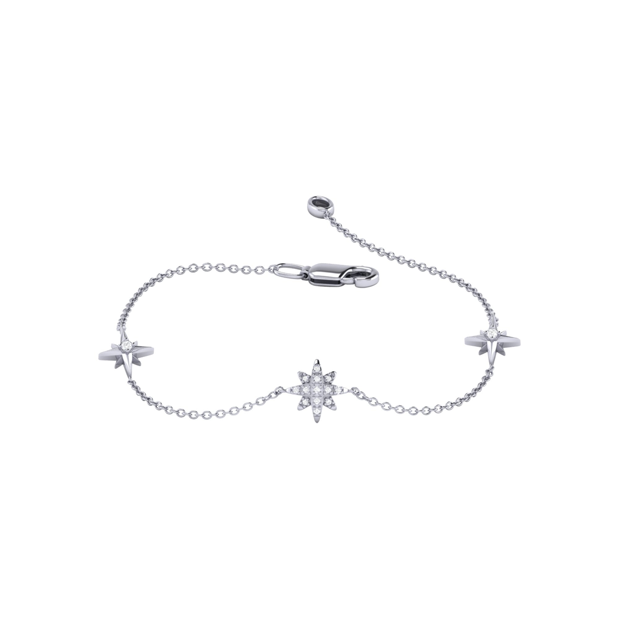 Our North Star Trio Sterling Silver Diamond Bracelet features three stunning stars and add celestial charm to your style. Expertly handcrafted with timeless beauty and grace.