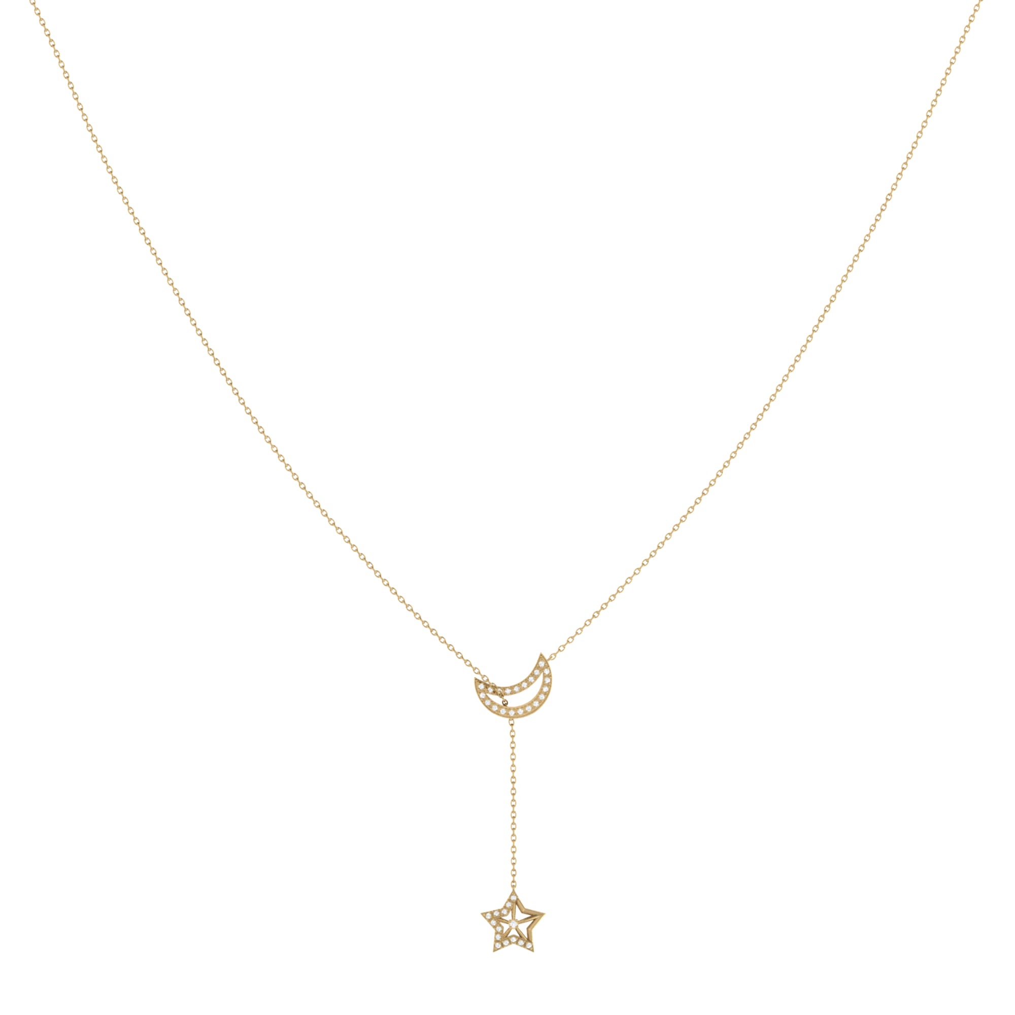 Shooting Star Moon Crescent Diamond Necklace in 14K Yellow Gold Vermeil on Sterling Silver