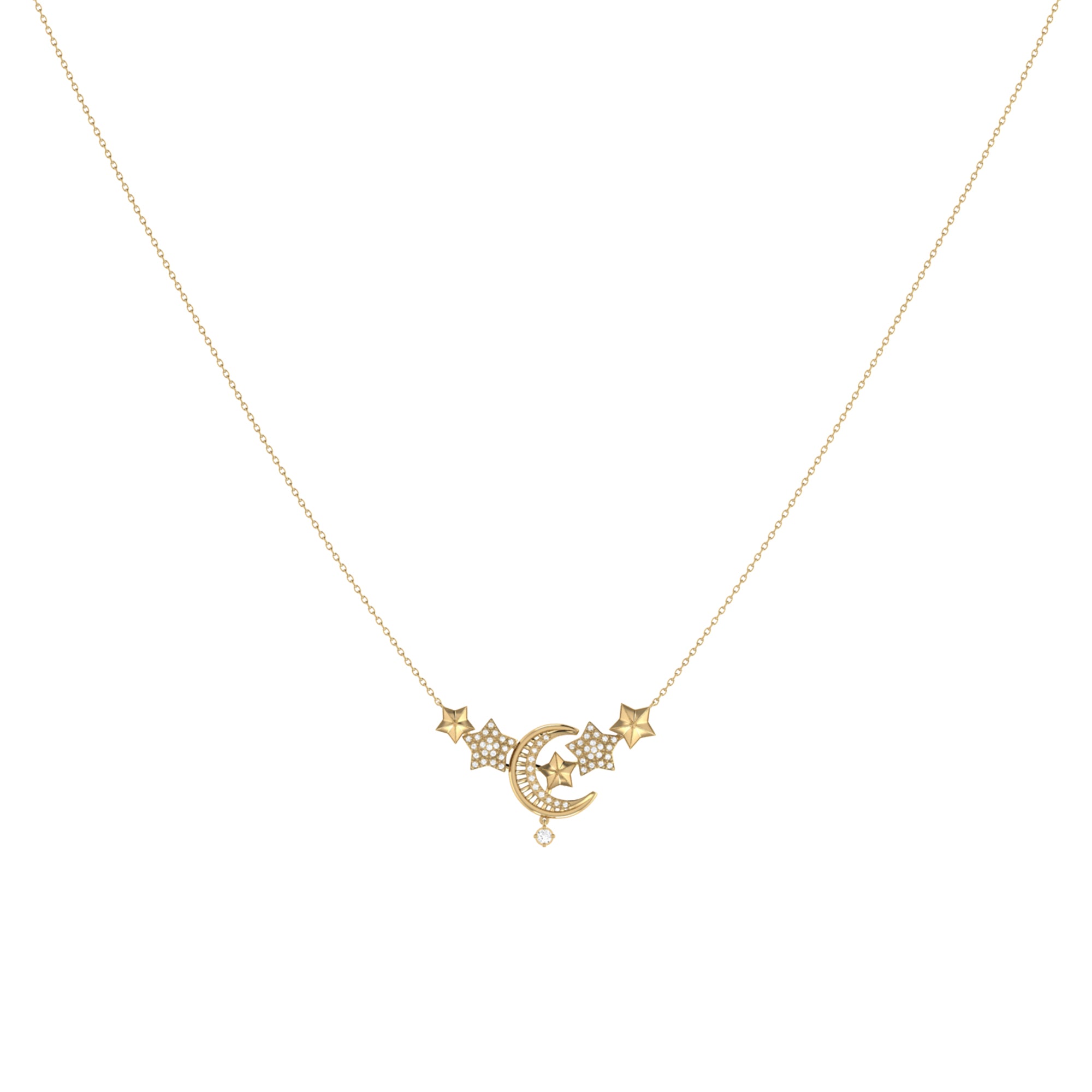 Star Cluster Moon Crescent Diamond Necklace in 14K Yellow Gold Vermeil on Sterling Silver