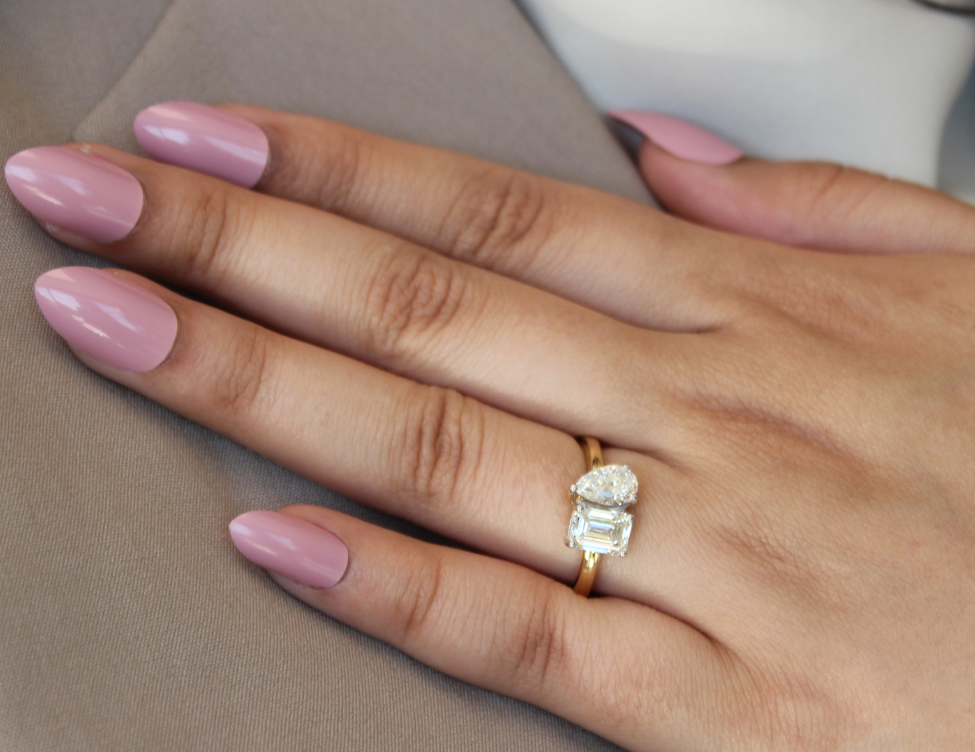 Willow 14K Yellow Gold Toi et Moi Emerald and Pear Lab Grown Diamond Ring - 2 ct