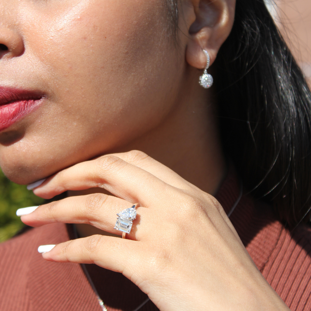 Willow 14K White Gold Toi et Moi Emerald and Pear Lab Grown Diamond Ring - 2 ct