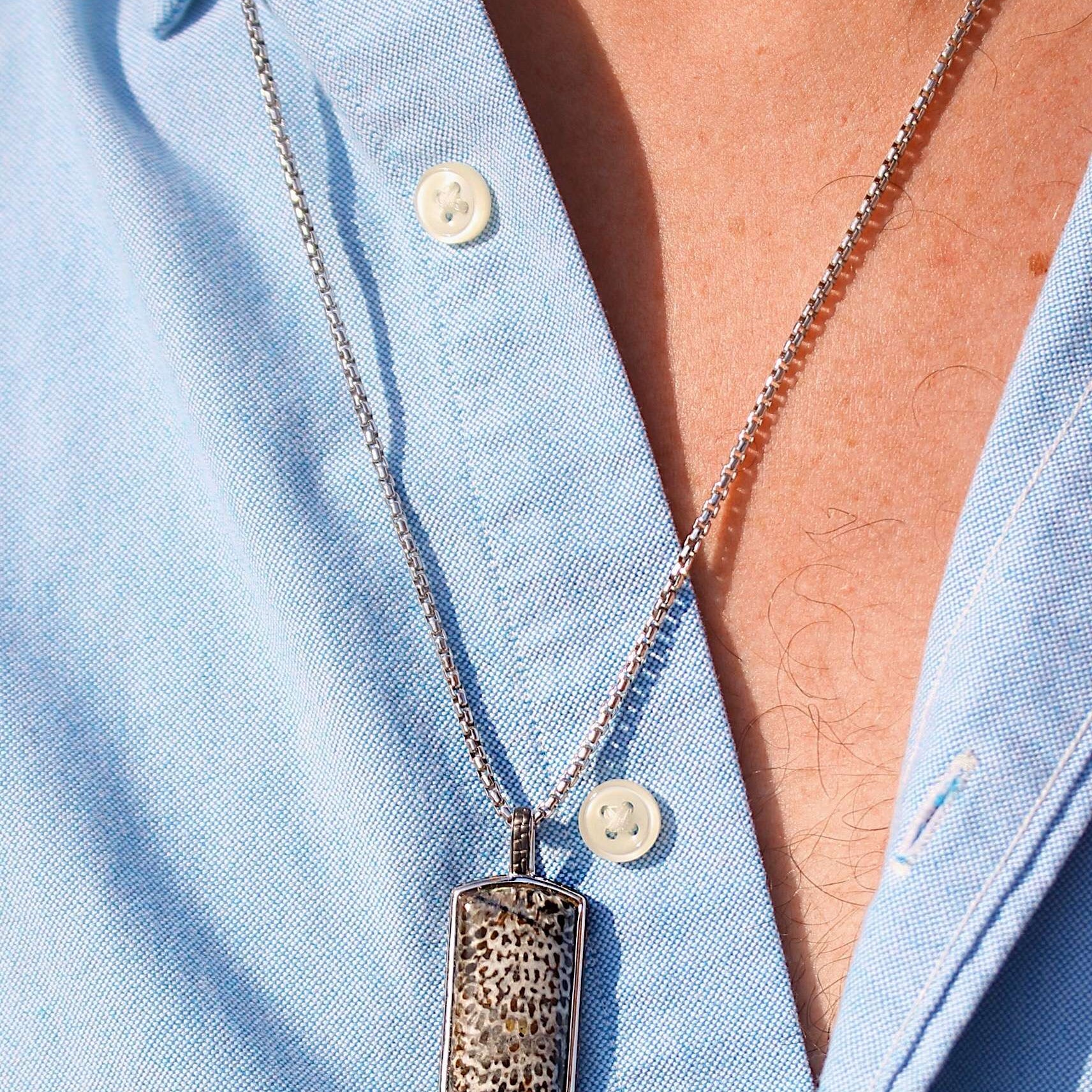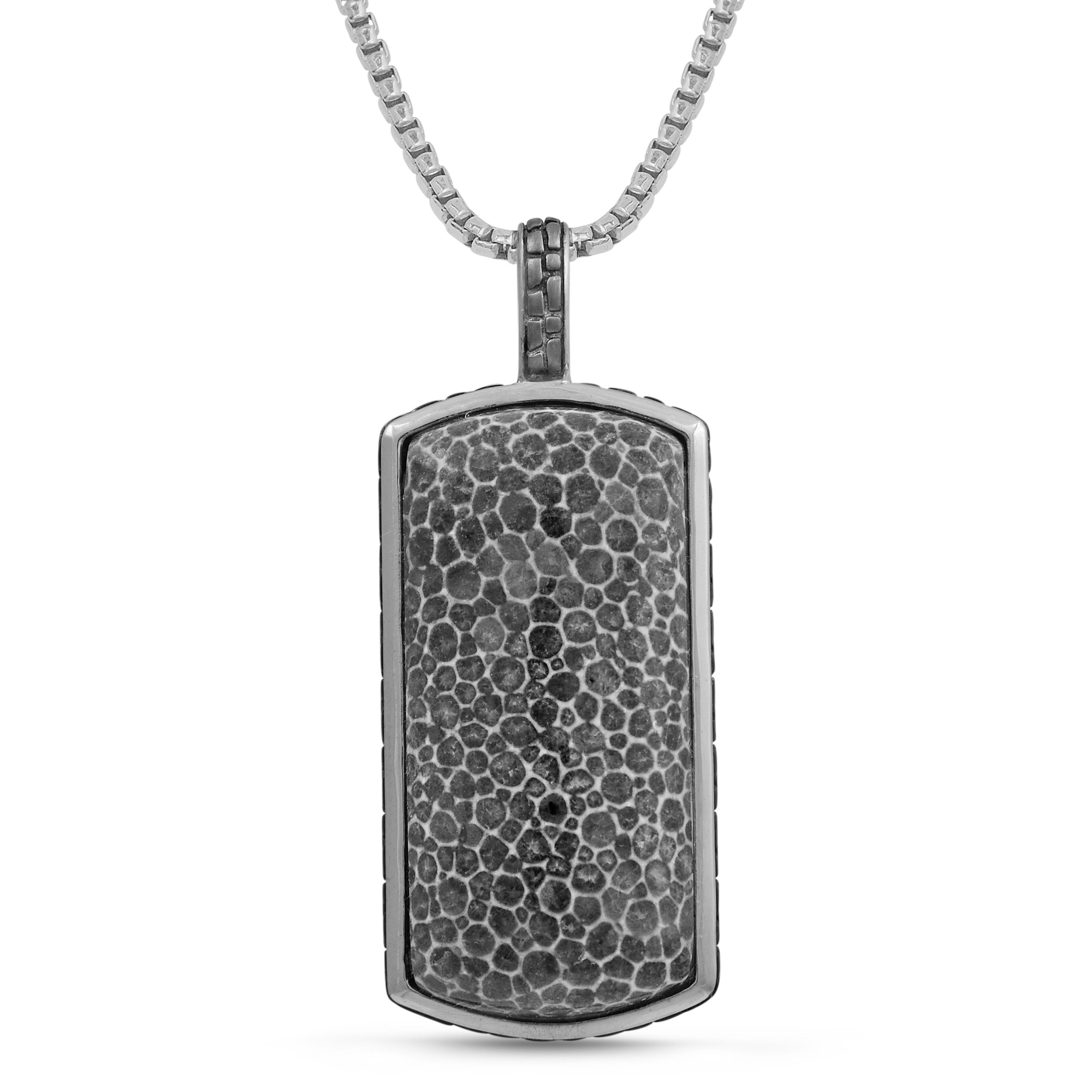 Fossil Agate Stone Tag in Black Rhodium Plated Sterling Silver