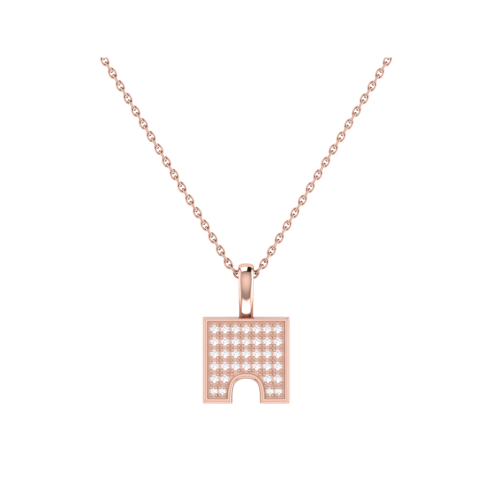 City Arches Square Diamond Pendant in 14K Rose Gold Vermeil on Sterling Silver