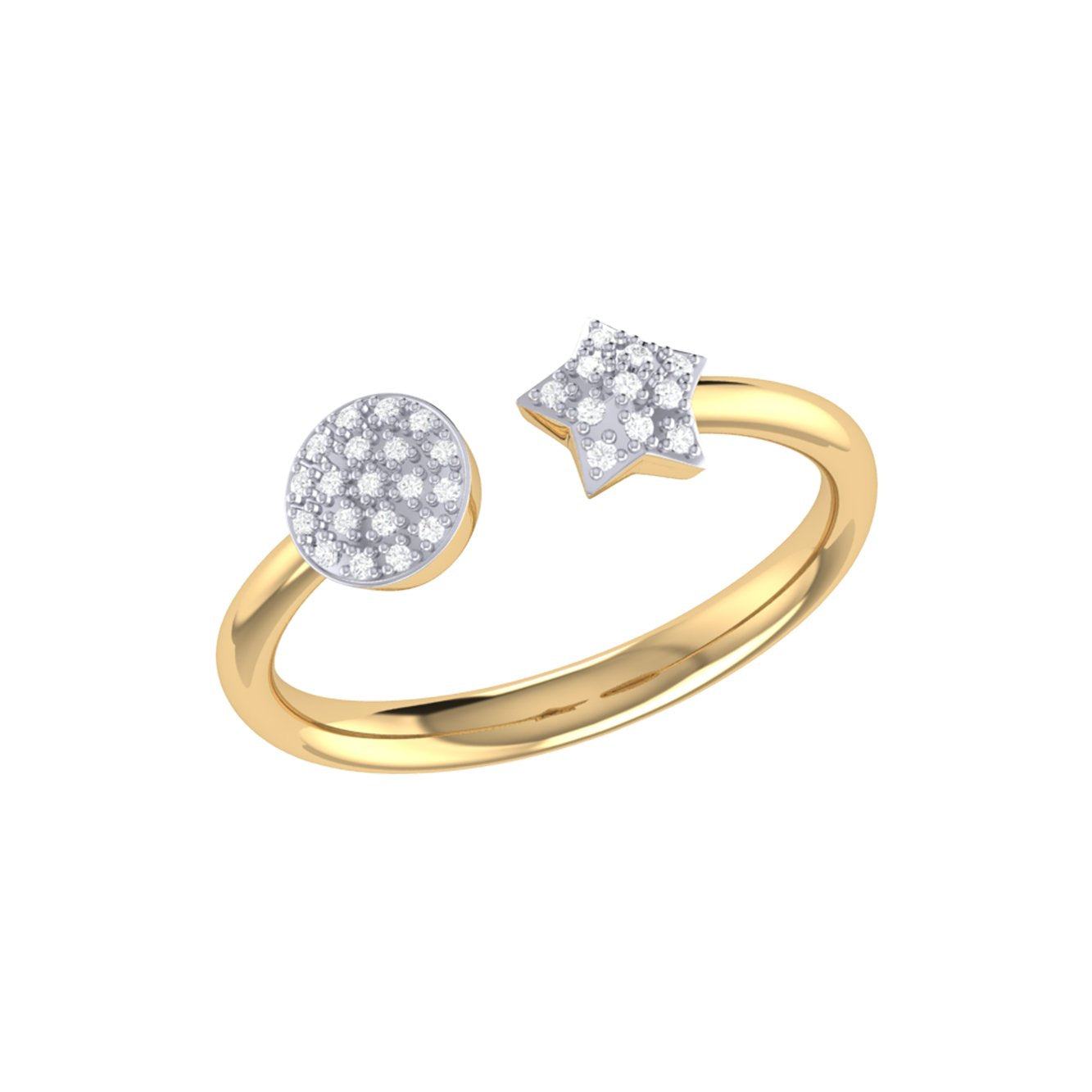 Full Moon Star Diamond Open Ring in 14K Yellow Gold Vermeil on Sterling Silver
