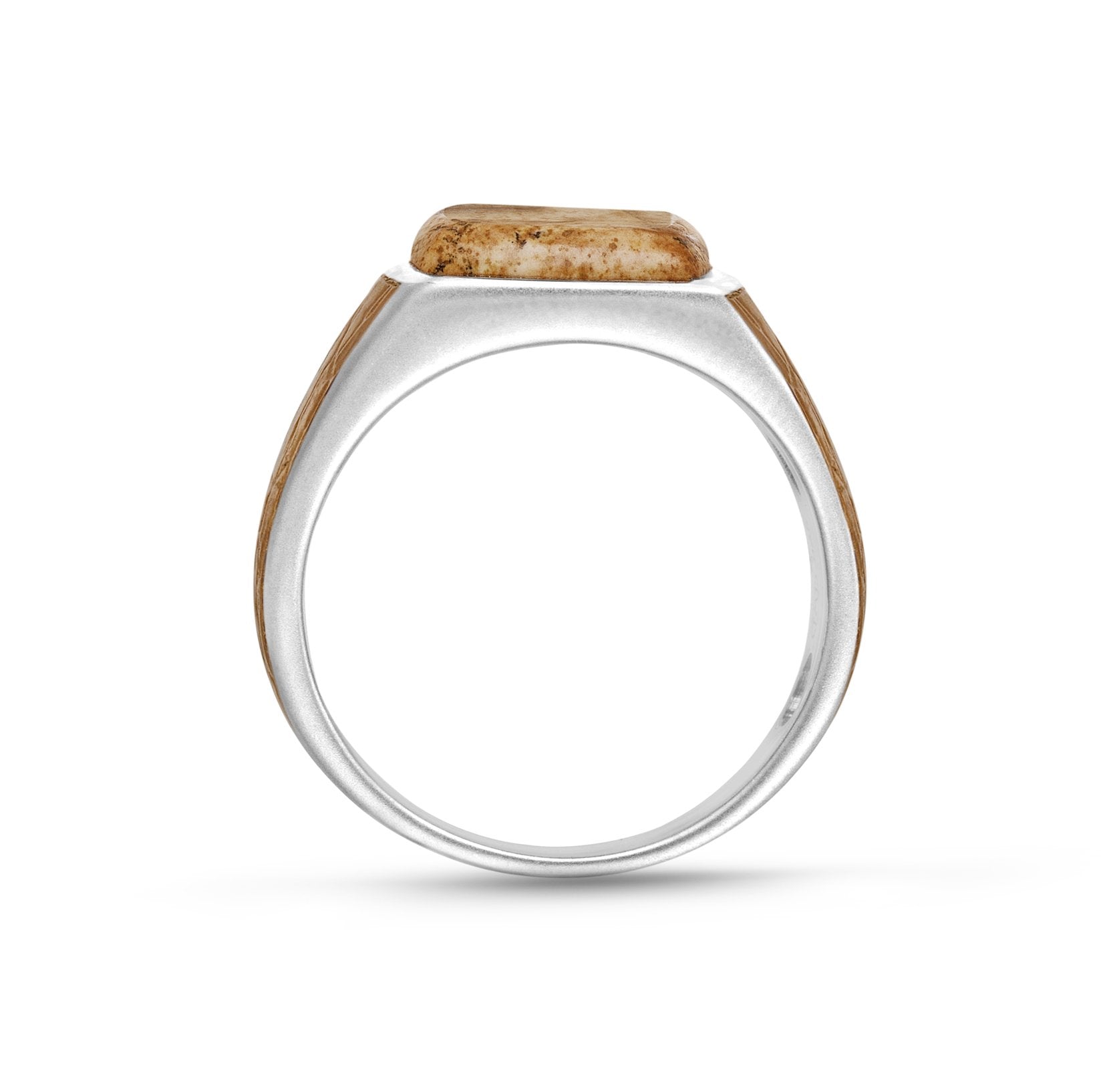 The Light Brown Picasso Jasper Sterling Silver Signet Ring features a refined and natural design. Ideal for the modern man who values understated elegance and unique patterns.