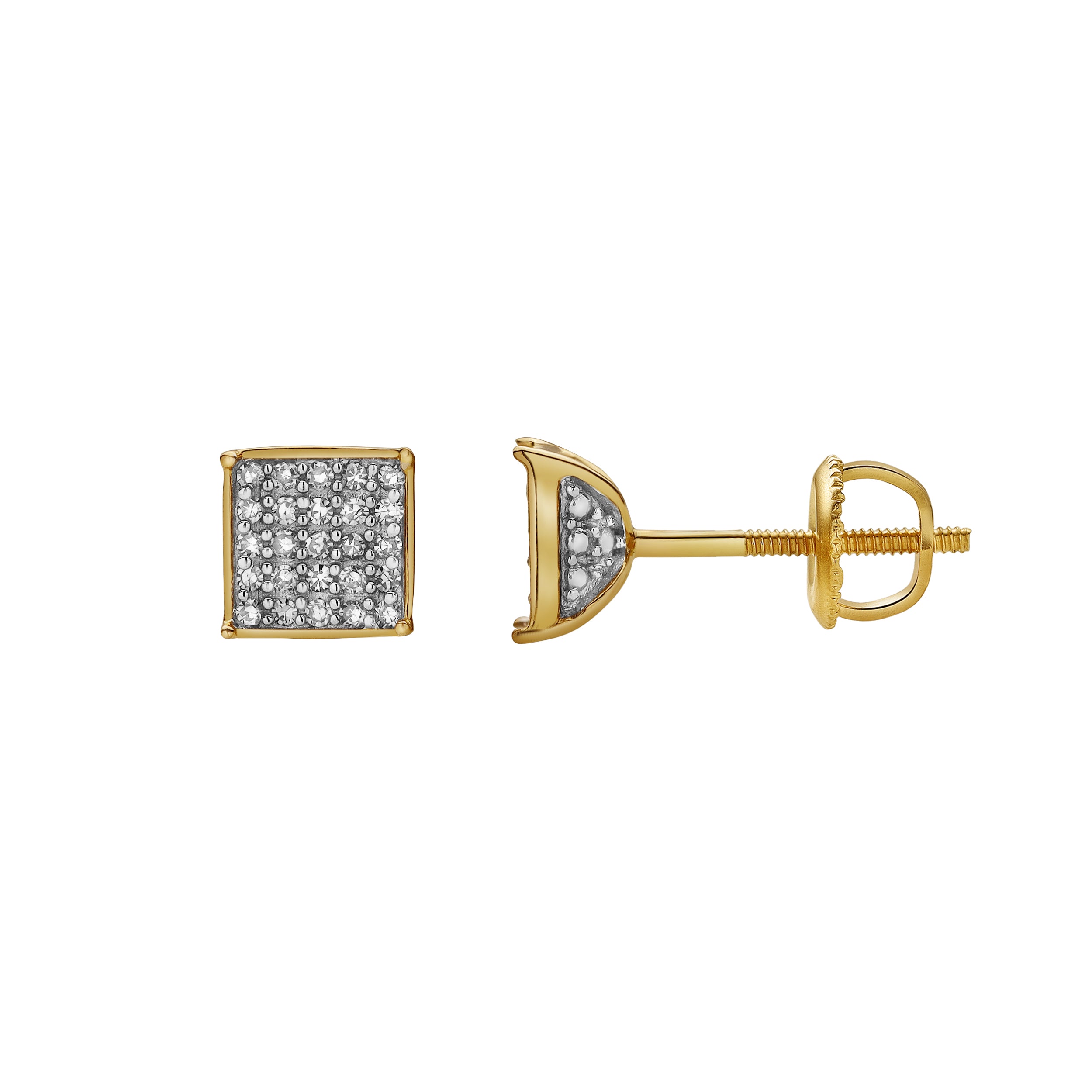 These 0.14 carat diamond earrings showcase a classic cluster design set in 10K yellow gold. Each diamond is thoughtfully placed to reflect a soft enduring brilliance that enhances both casual and dressy looks. A secure screwback setting ensures lasting comfort and everyday wearability. With their timeless style and delicate sparkle these earrings bring a refined touch to any jewelry collection.