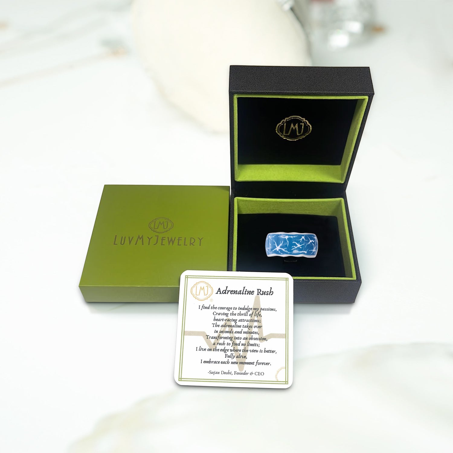 The Ocean Waves Sterling Silver & Enamel Band Ring features a fluid and dynamic design. Ideal for the man who is captivated by the sea and desires a touch of coastal elegance.