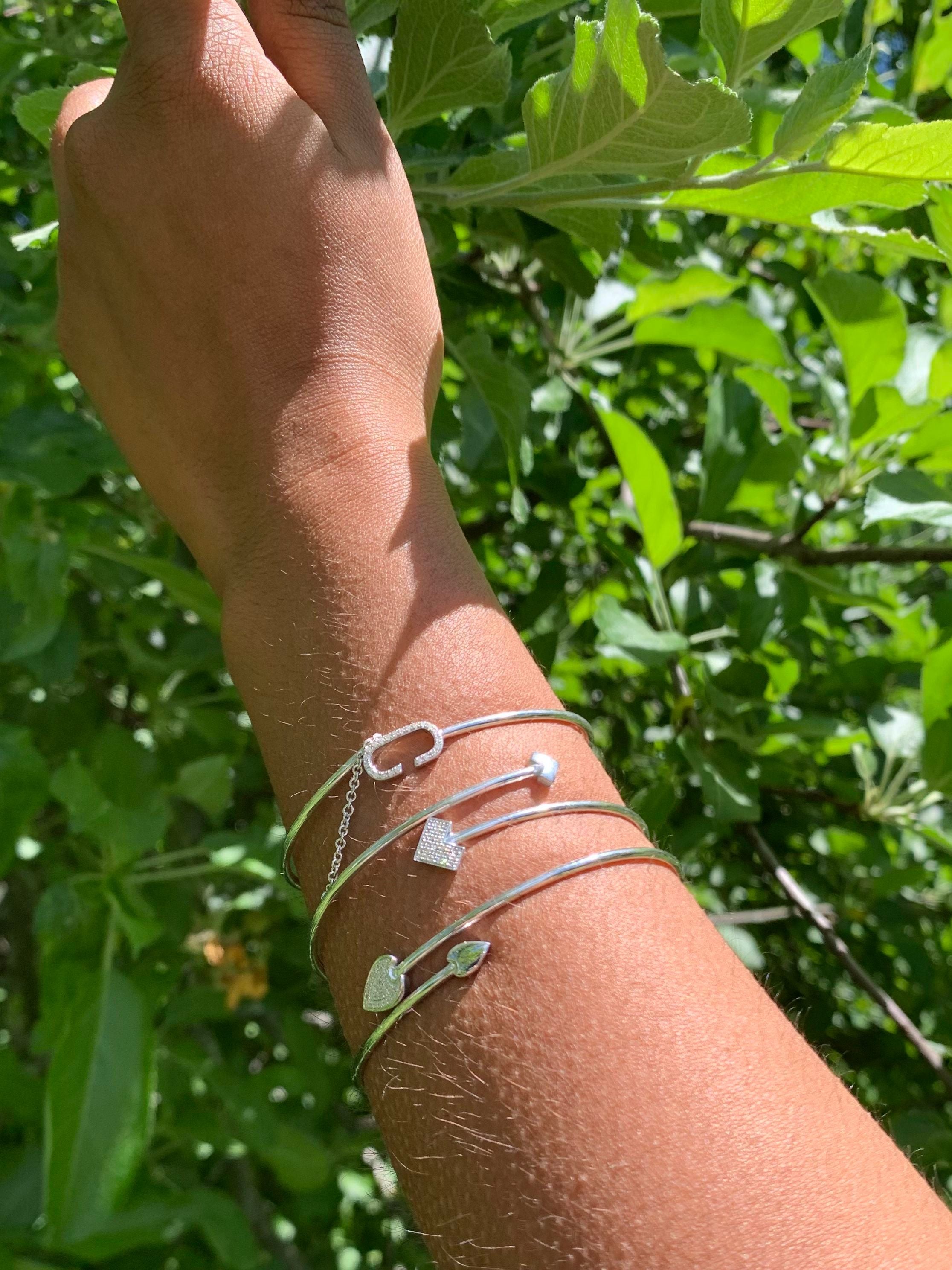 One Way Arrow Adjustable Diamond Bangle in Sterling Silver