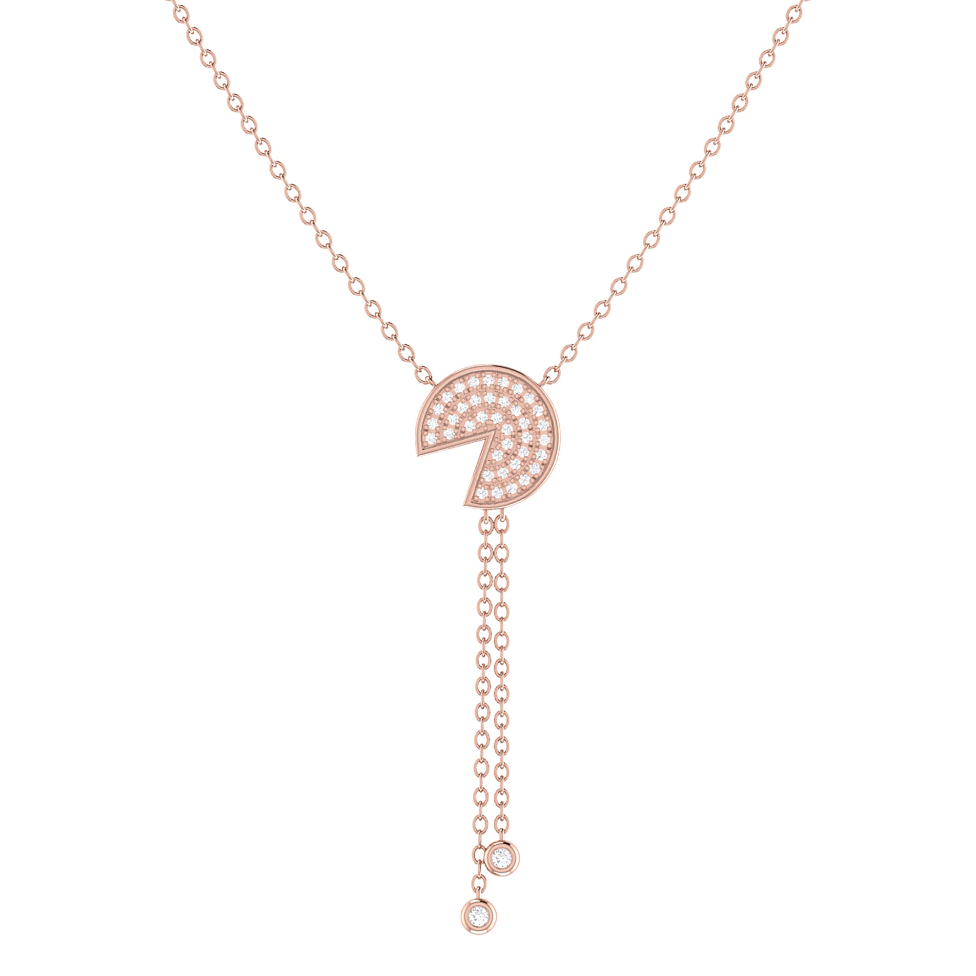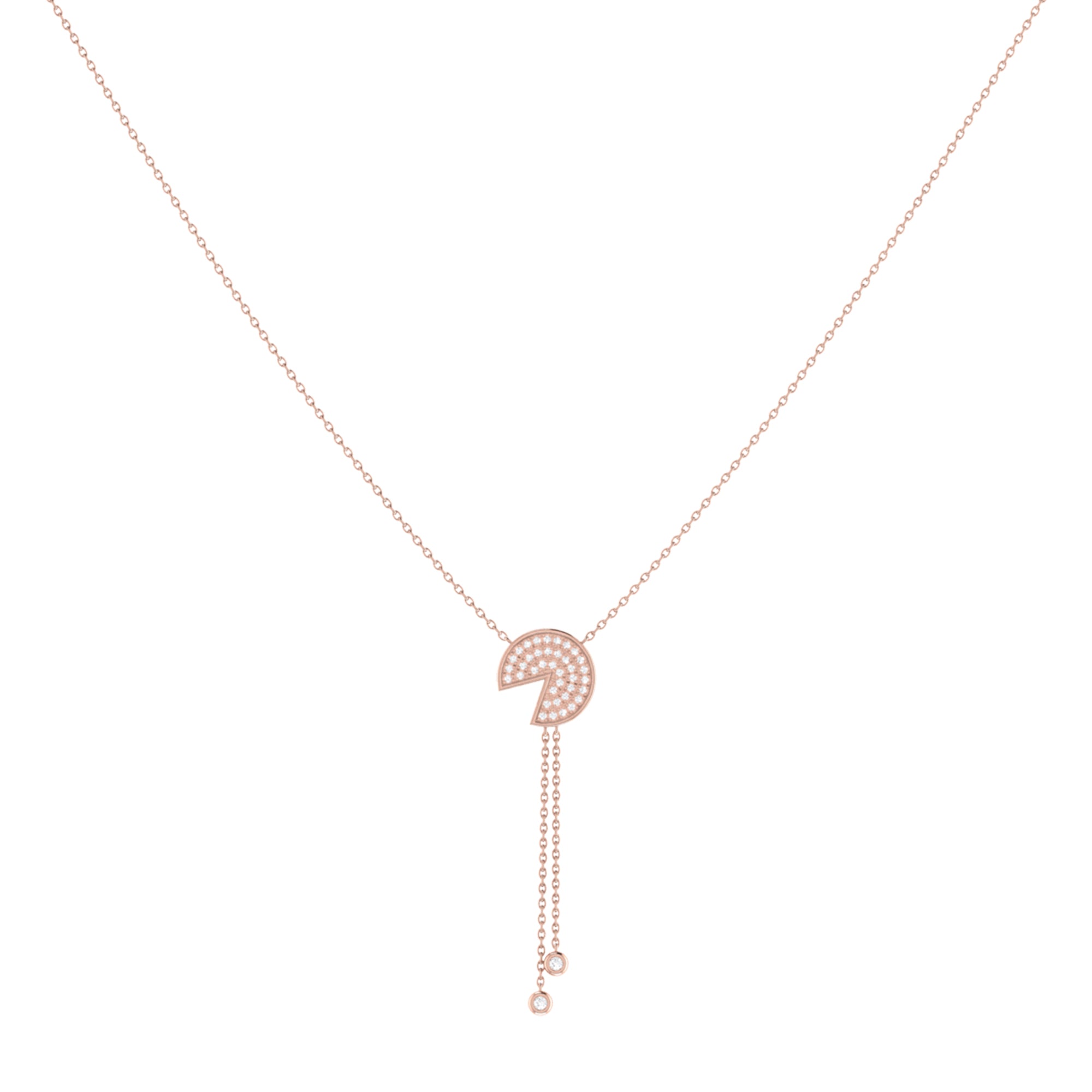 Pac-Man Candy Bolo Adjustable Diamond Lariat Necklace in 14K Rose Gold Vermeil on Sterling Silver