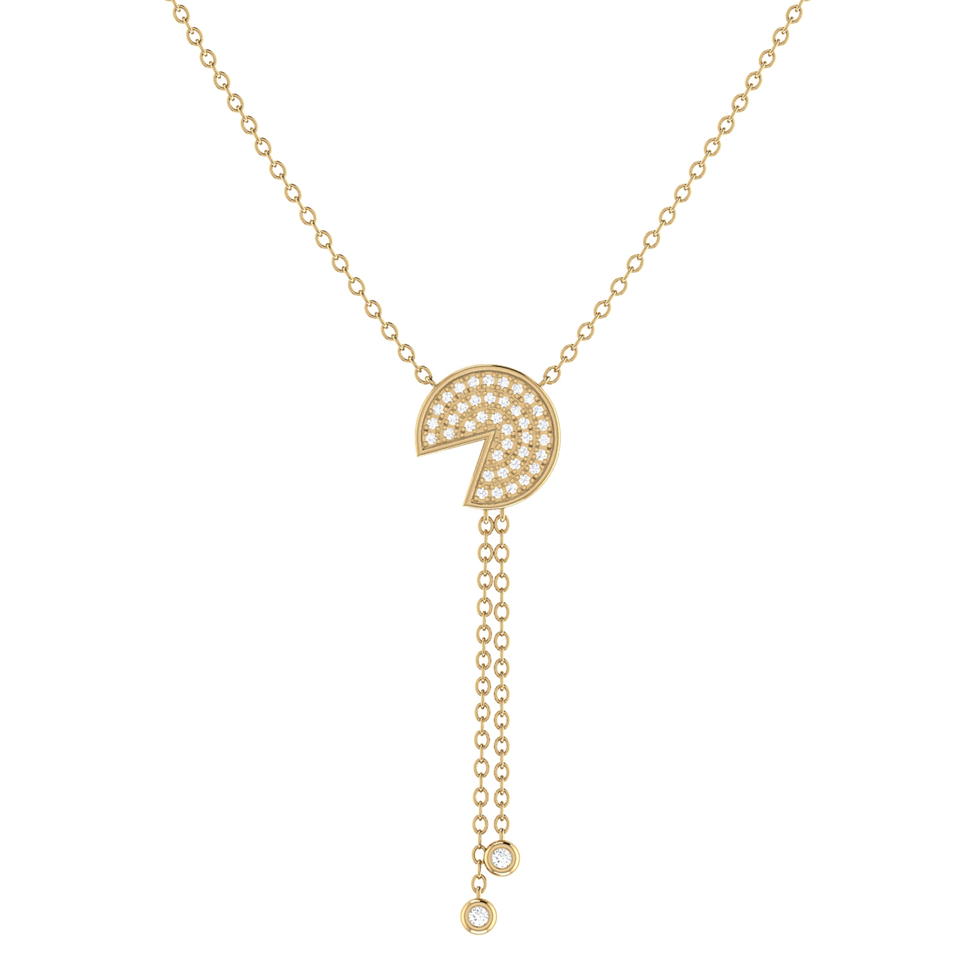 Pac-Man Candy Bolo Adjustable Diamond Lariat Necklace in 14K Yellow Gold Vermeil on Sterling Silver