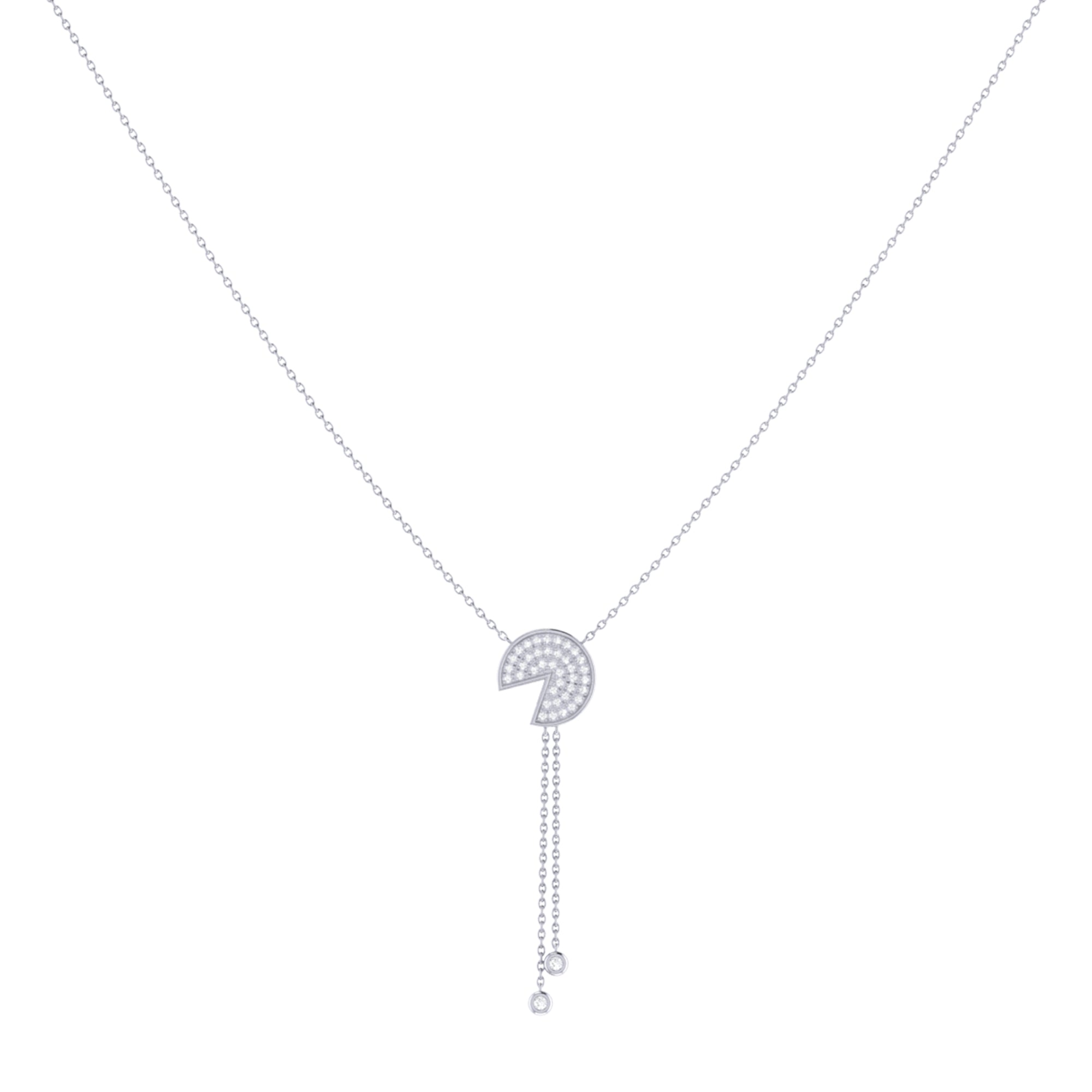 Sweeten your style with the Pac Man Candy Sterling Silver Diamond Lariat Necklace. Designed for the playful woman who loves sweet details and lasting elegance.