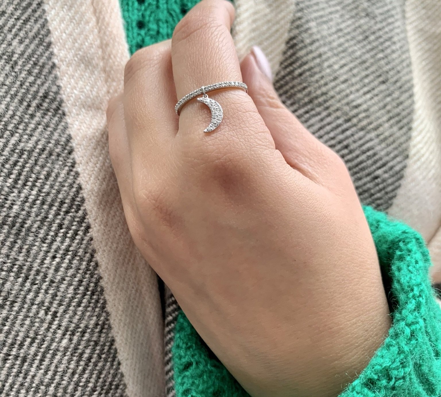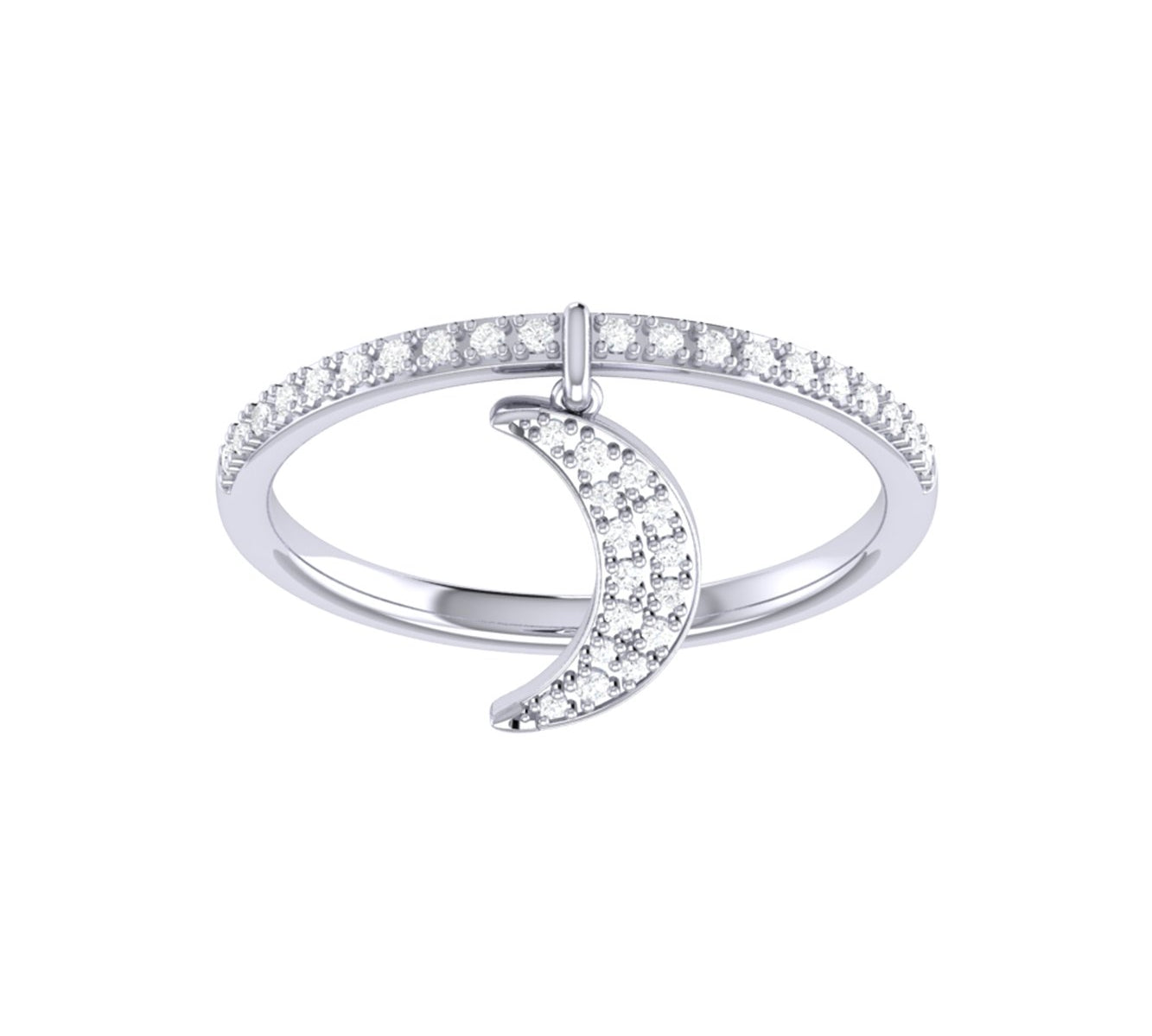 Full Moon Star Diamond Open Ring in Sterling Silver
