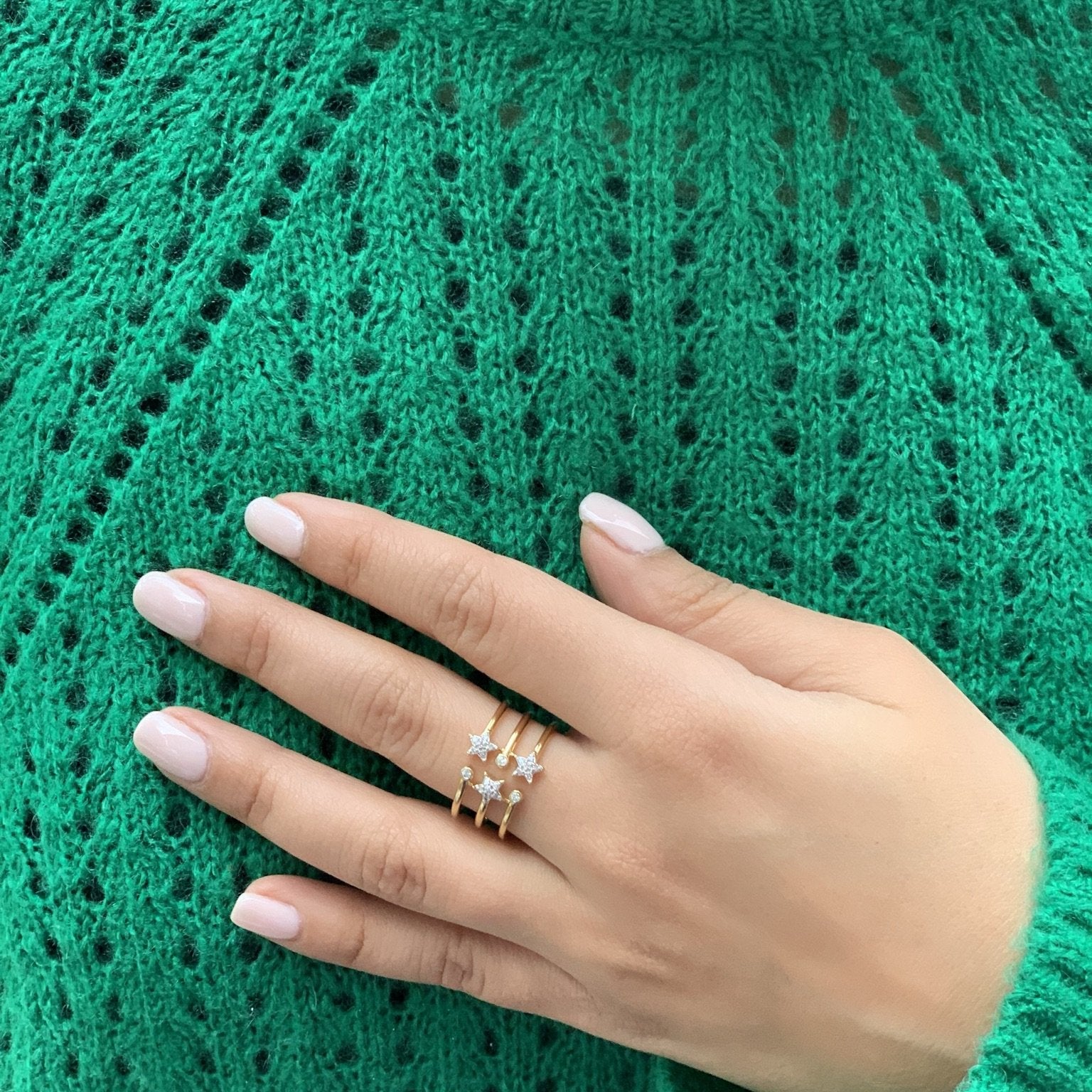 Dazzling Star Bezel Trio Diamond Ring in 14K Yellow Gold Vermeil on Sterling Silver