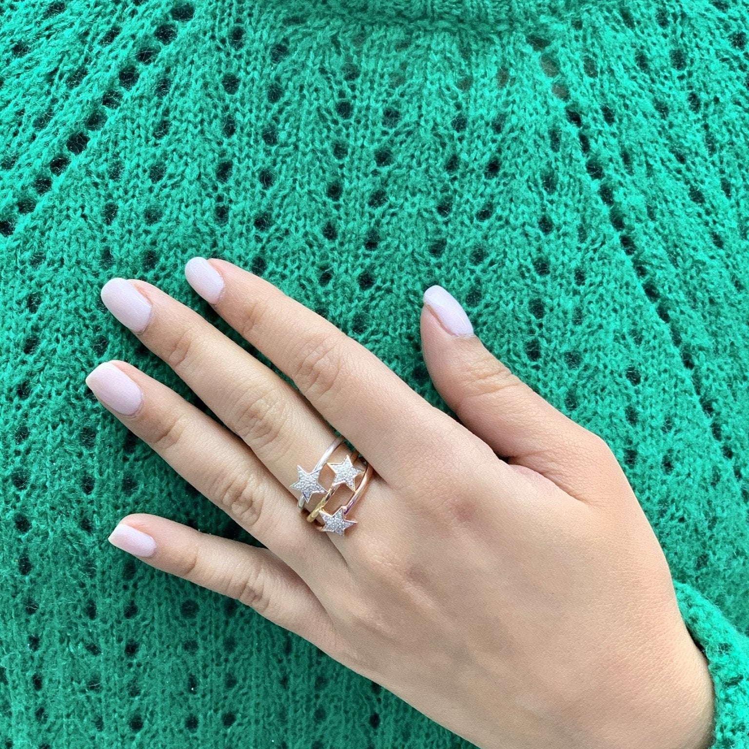 Tri-Color Dazzling Star Detachable Diamond Ring in 14K Gold & Rose Gold Vermeil on Sterling Silver
