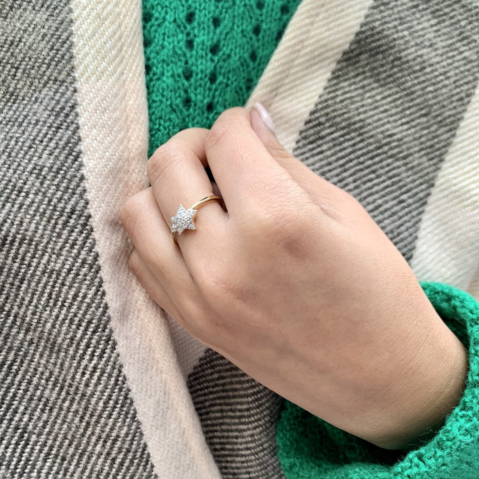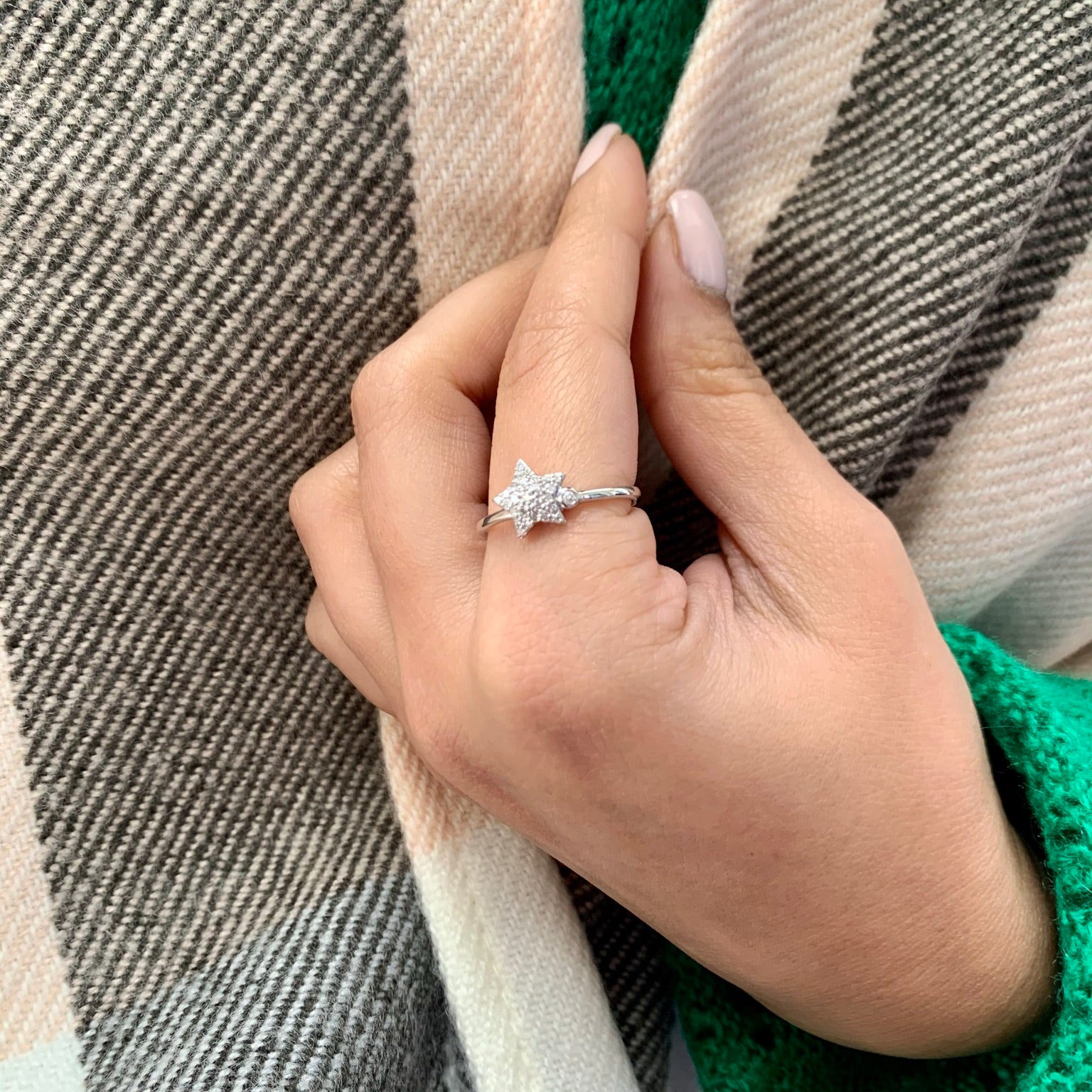 Lucky Star Diamond Charm Ring in Sterling Silver